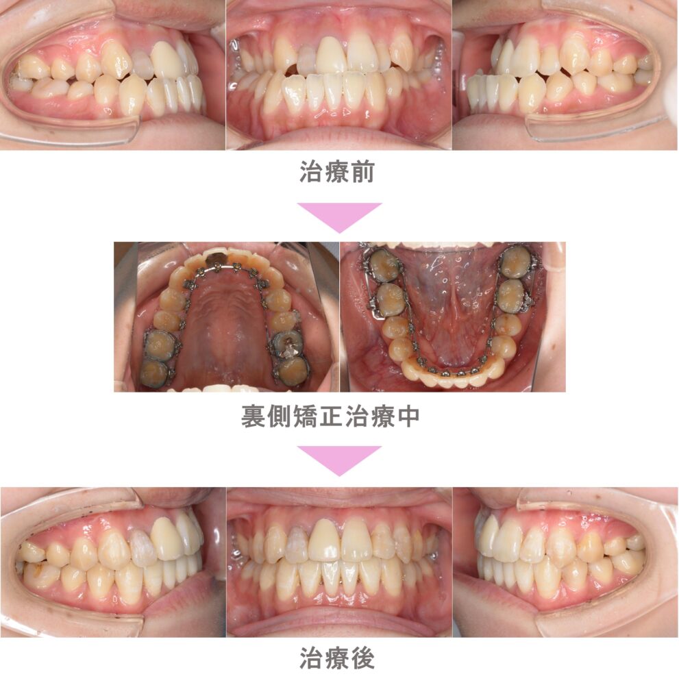インビザライン矯正(マウスピース矯正)の症例紹介|叢生(前歯のでこぼこ)と過蓋咬合(深噛み)の症状|非抜歯による矯正治療|治療期間は1年6か月(東京都目黒区・20代女性 )