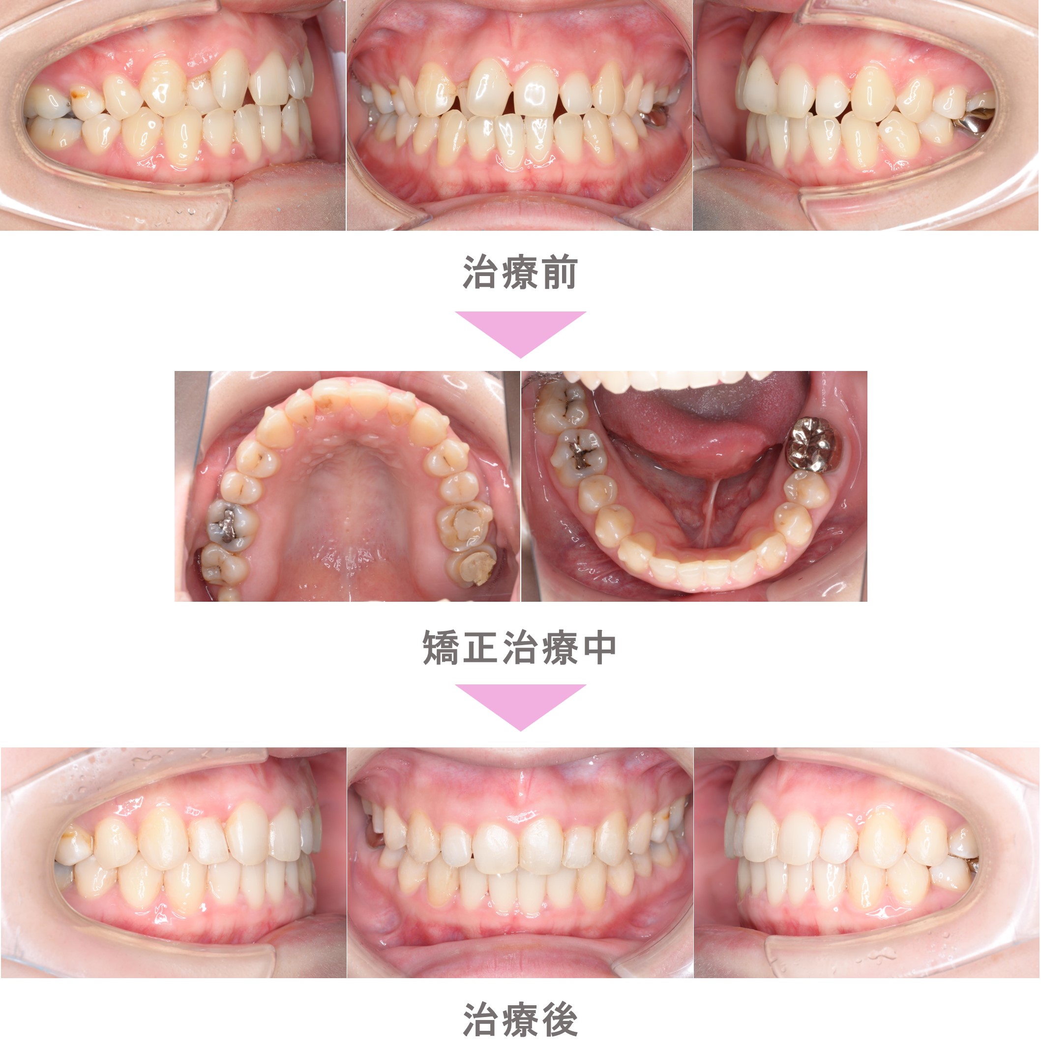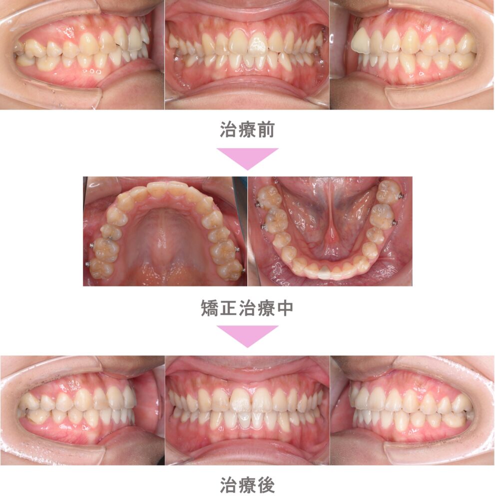 インビザライン矯正(マウスピース矯正)の症例紹介|叢生(前歯のでこぼこ)とすきっ歯(空隙歯列)の症状|非抜歯による矯正治療|治療期間は1年10か月(東京都中野区・20代女性 )