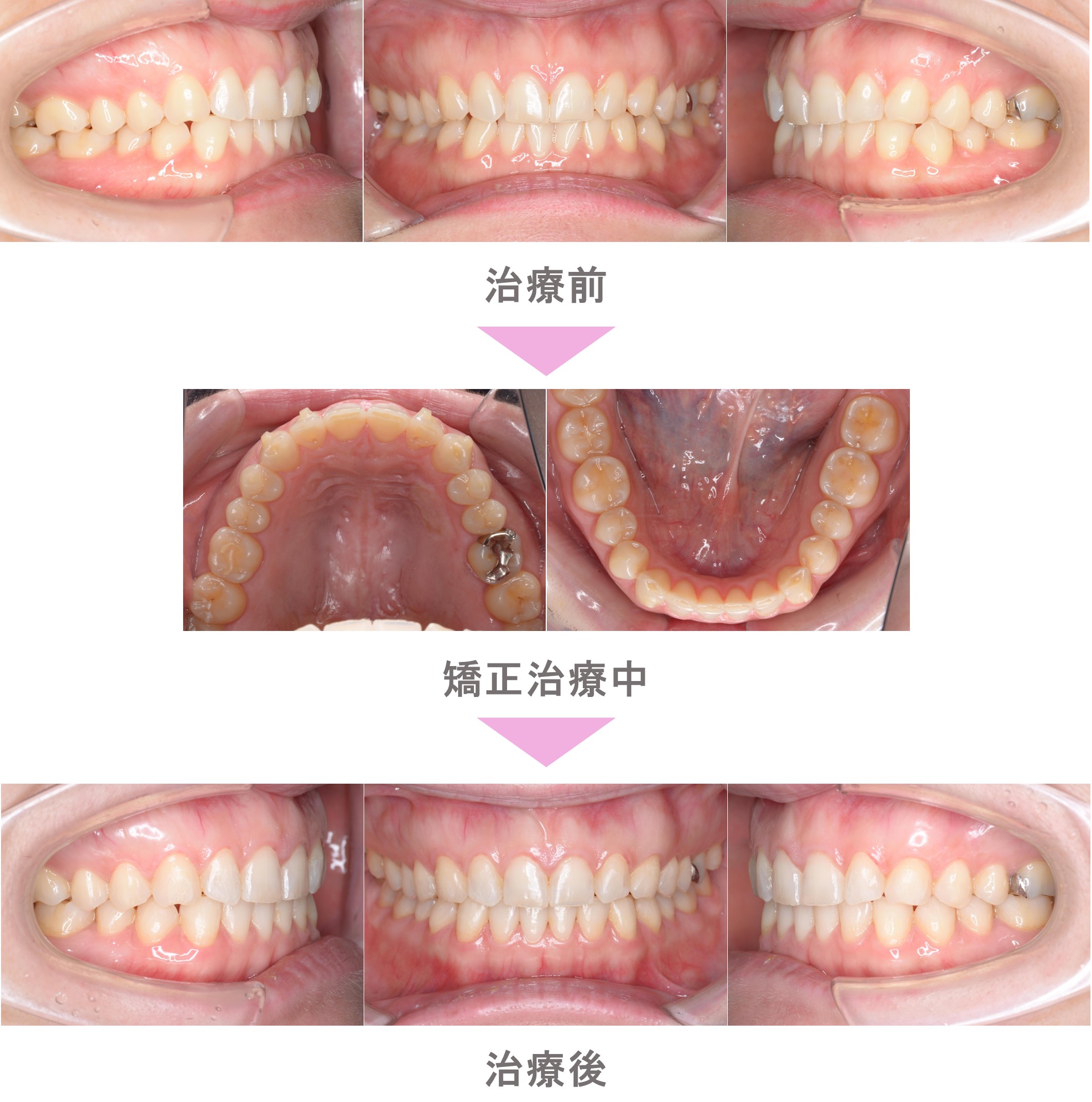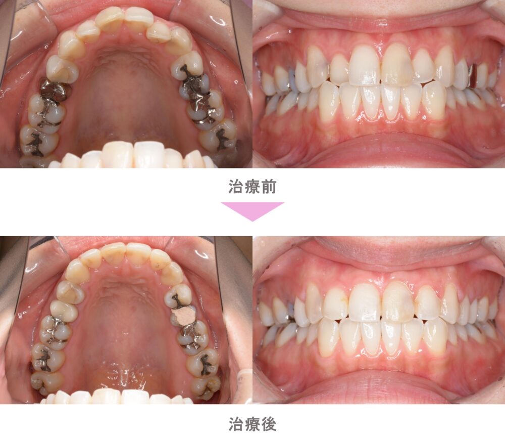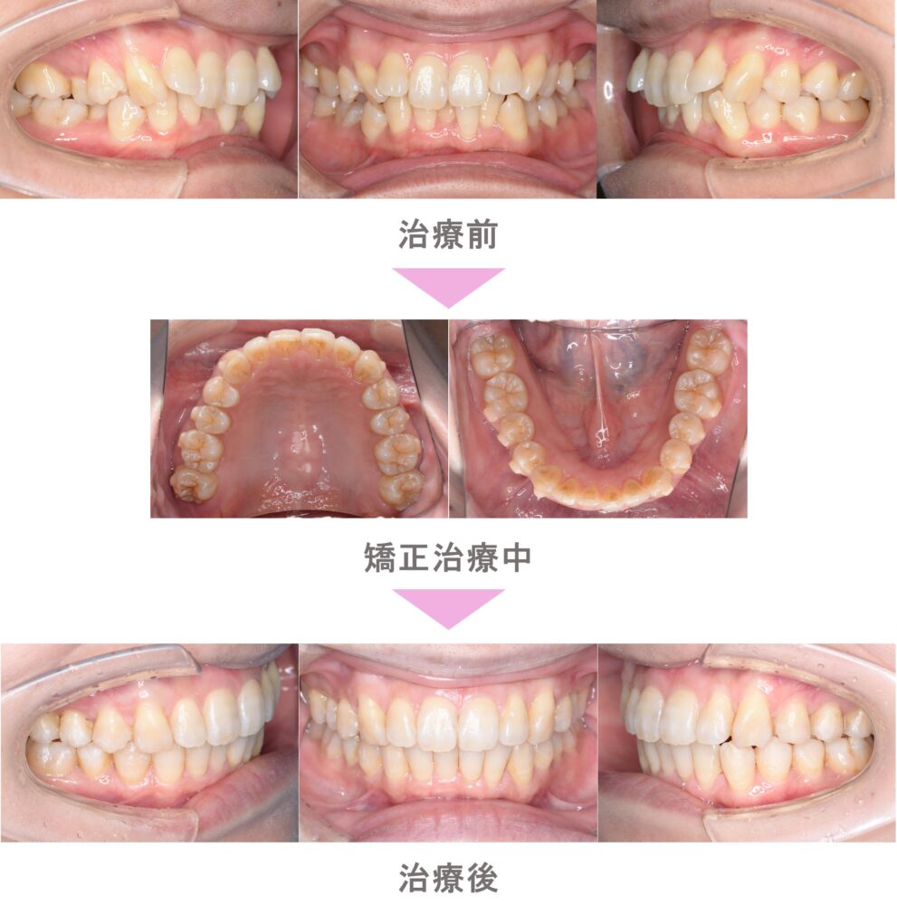 インビザライン矯正(マウスピース矯正)の症例紹介|叢生(前歯のでこぼこ)の症状|非抜歯による再矯正治療(後戻り・失敗)|治療期間は1年4か月(東京都世田谷区・40代女性 )