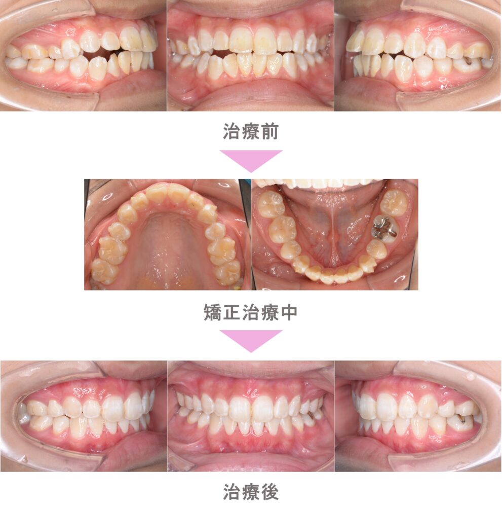 インビザライン矯正(マウスピース矯正)の症例紹介|叢生(前歯のでこぼこ)の症状|非抜歯による再矯正治療(後戻り・失敗)|治療期間は1年3か月(神奈川県横浜市・20代女性 )