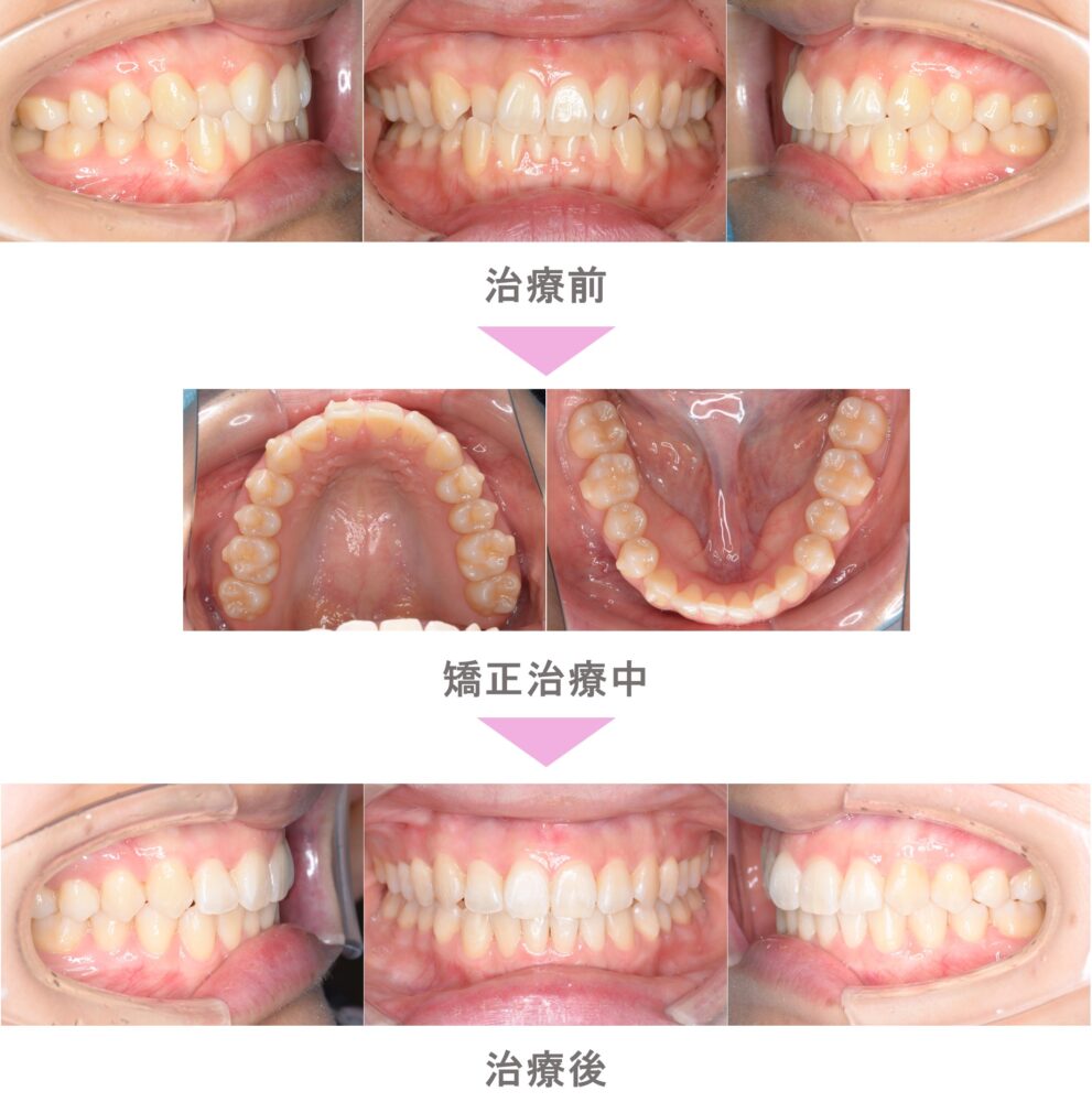 インビザライン矯正(マウスピース矯正)の症例紹介|叢生(前歯のでこぼこ)と開咬(オープンバイト)と出っ歯(上顎前突)の症状|抜歯による再矯正治療(後戻り・失敗)|治療期間は2年(東京都世田谷区・10代女性 )