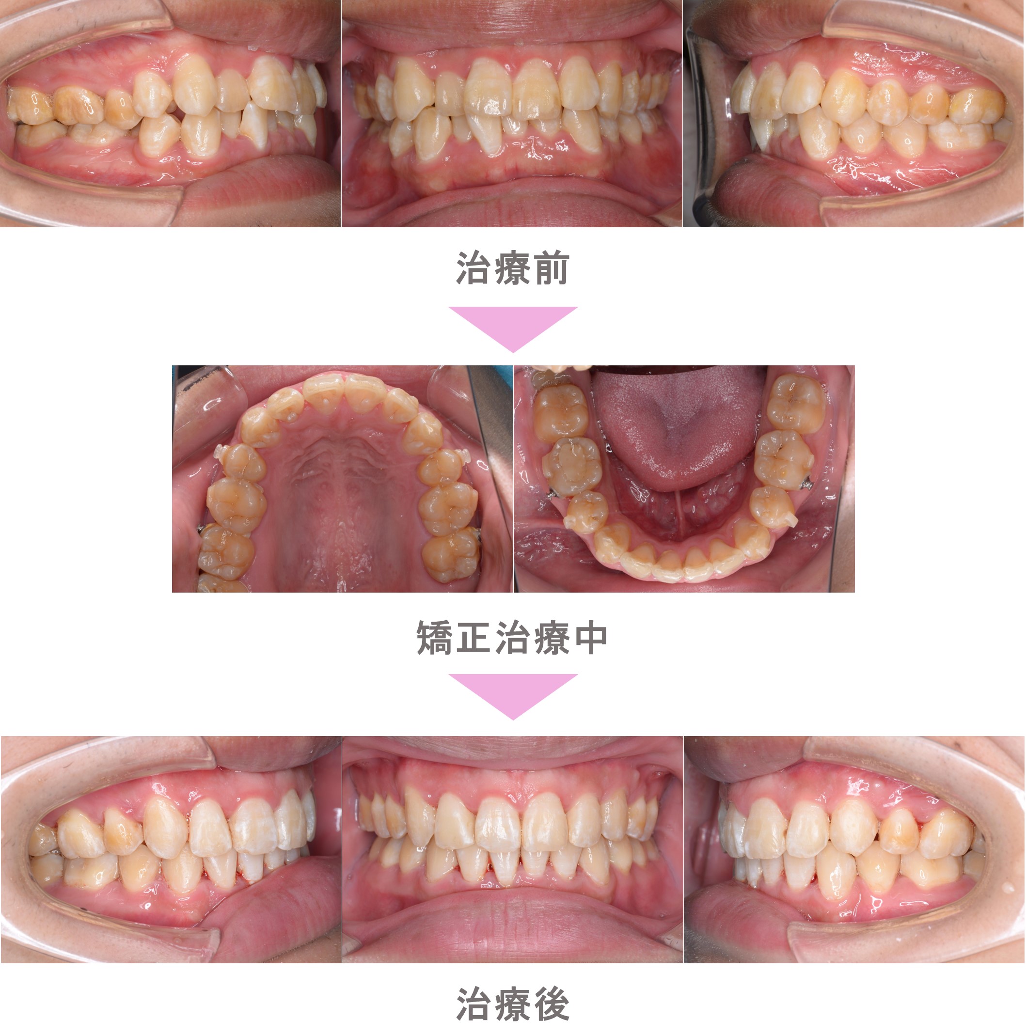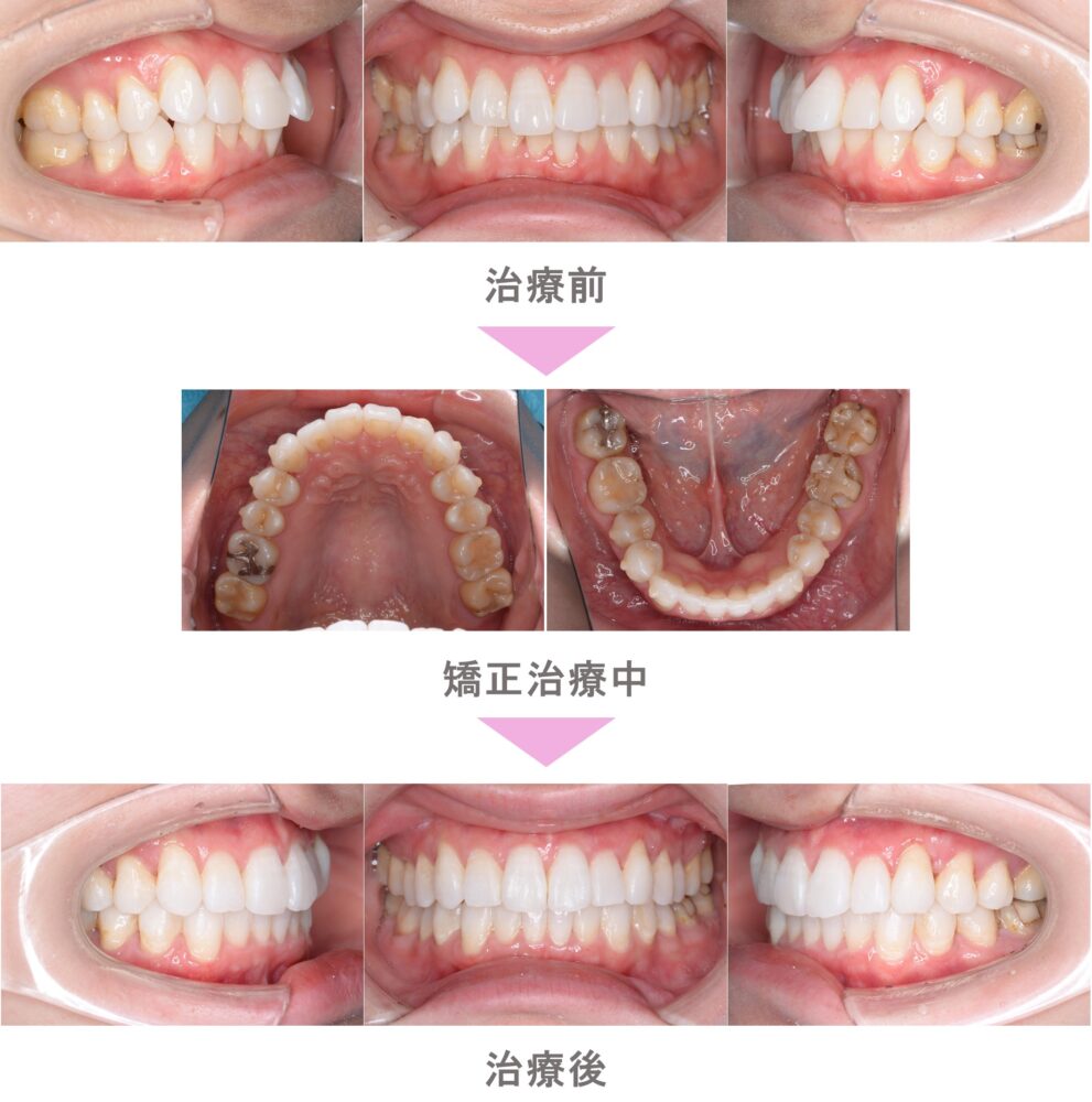 インビザライン矯正(マウスピース矯正)の症例紹介|叢生(前歯のでこぼこ)と過蓋咬合(深噛み)の症状|抜歯による矯正治療|治療期間は2年6か月(東京都台東区・20代男性 )
