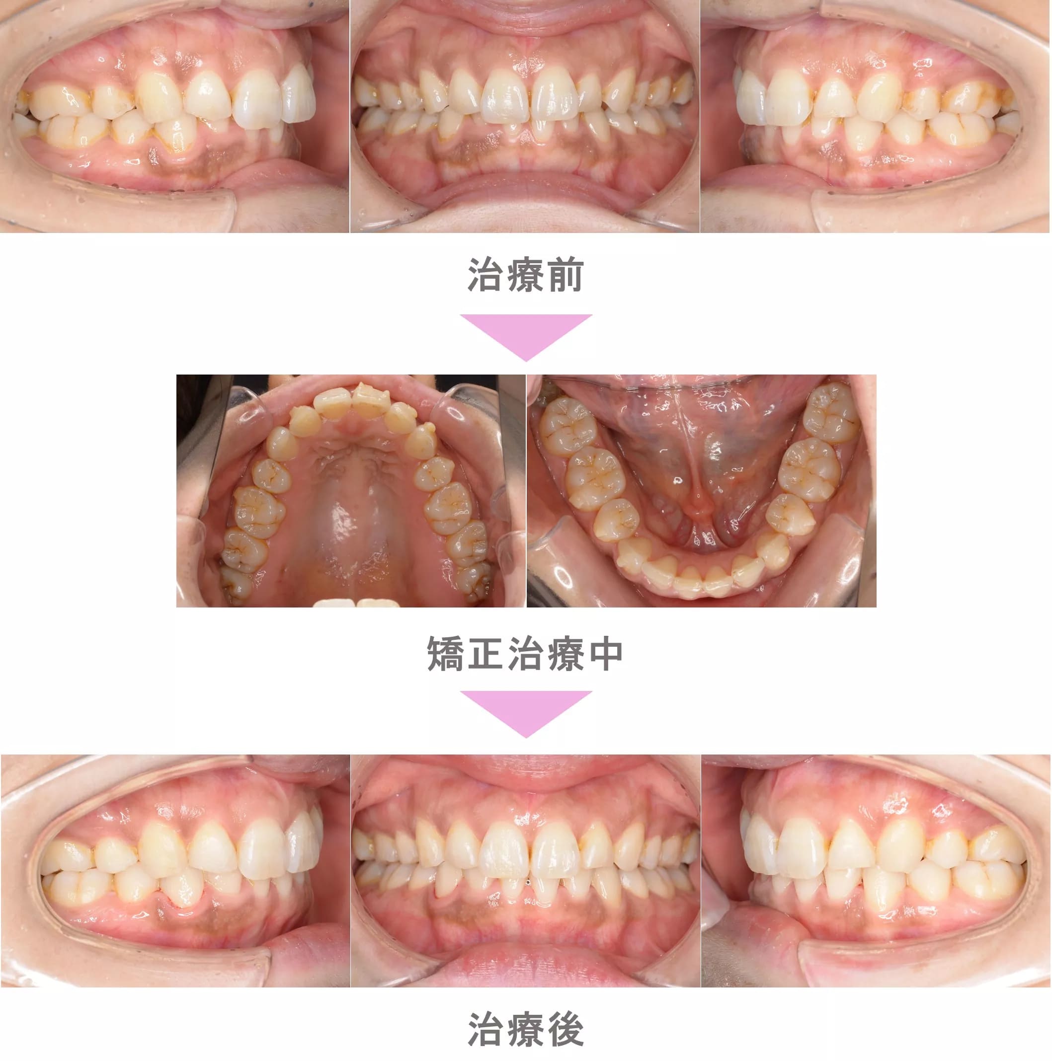 部分矯正(プチ矯正)・インビザラインライト(マウスピース矯正)の症例紹介|叢生(前歯のでこぼこ)の症状|非抜歯による矯正治療|治療期間は1年6か月(神奈川県川崎市・40代女性 )