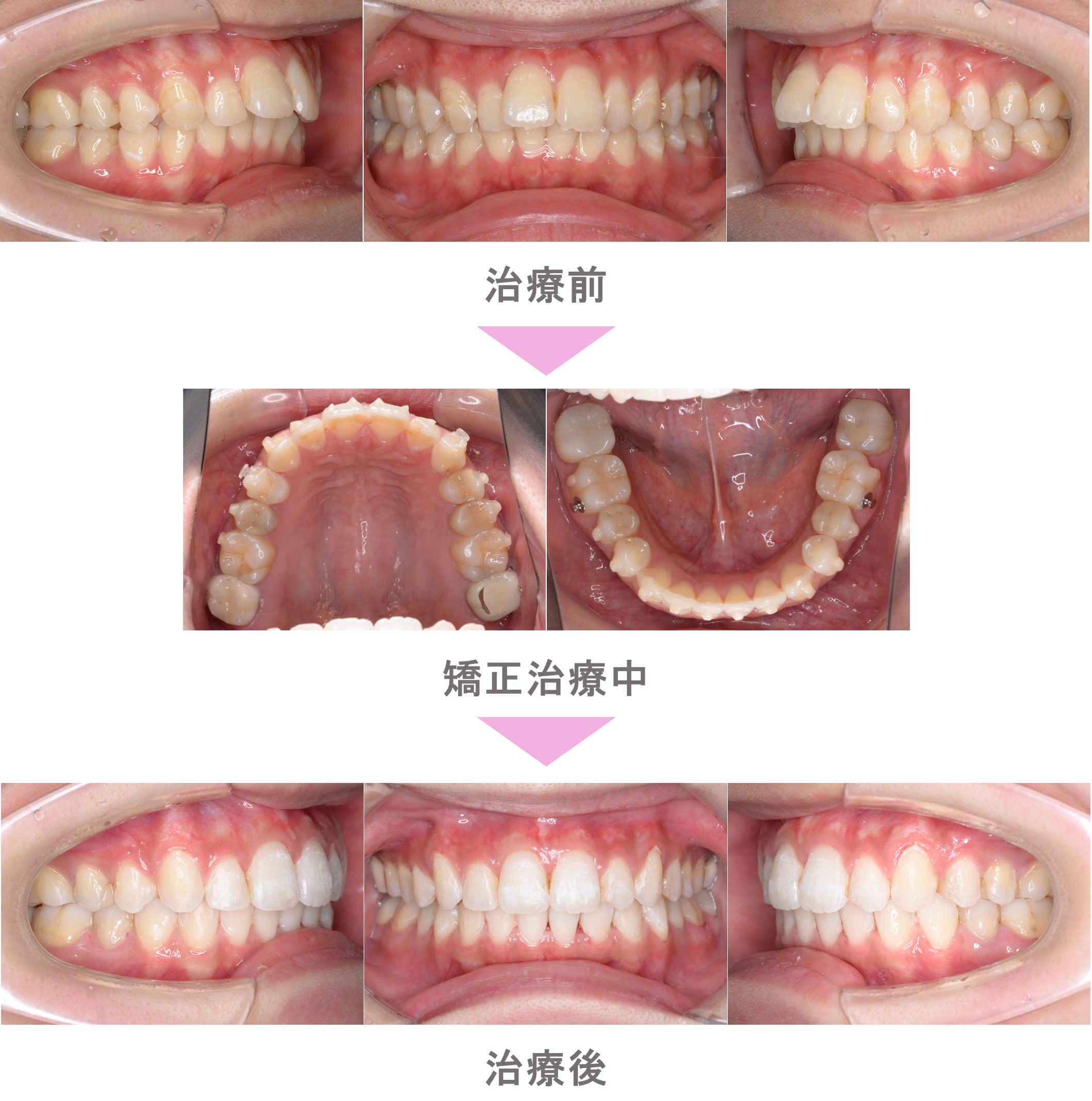 インビザライン矯正(マウスピース矯正)の症例紹介|叢生(前歯のでこぼこ)と出っ歯(上顎前突)の症状|非抜歯による矯正治療|治療期間は1年7か月(東京都台東区・20代女性 )