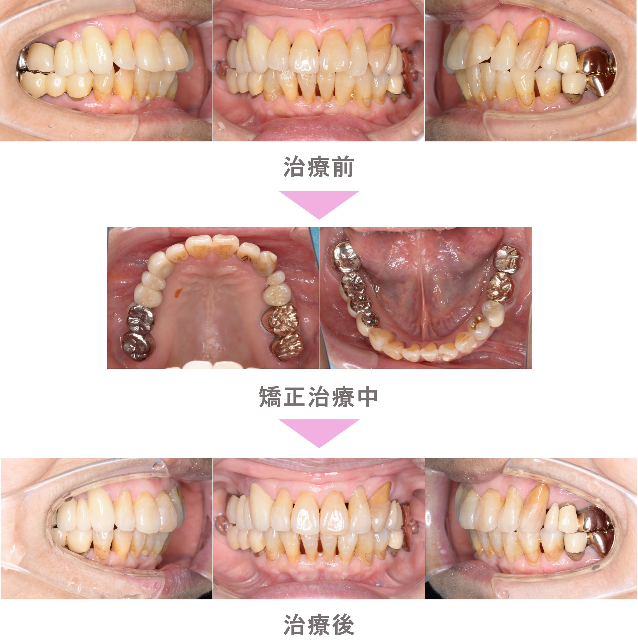 インビザライン矯正(マウスピース矯正)の症例紹介|叢生(前歯のでこぼこ)の症状|非抜歯による再矯正治療(後戻り・失敗)|治療期間は1年1か月(神奈川県横浜市・70代女性 )