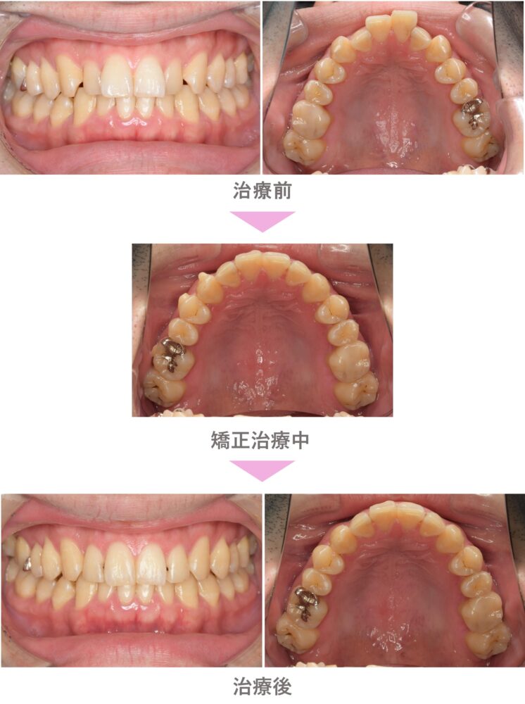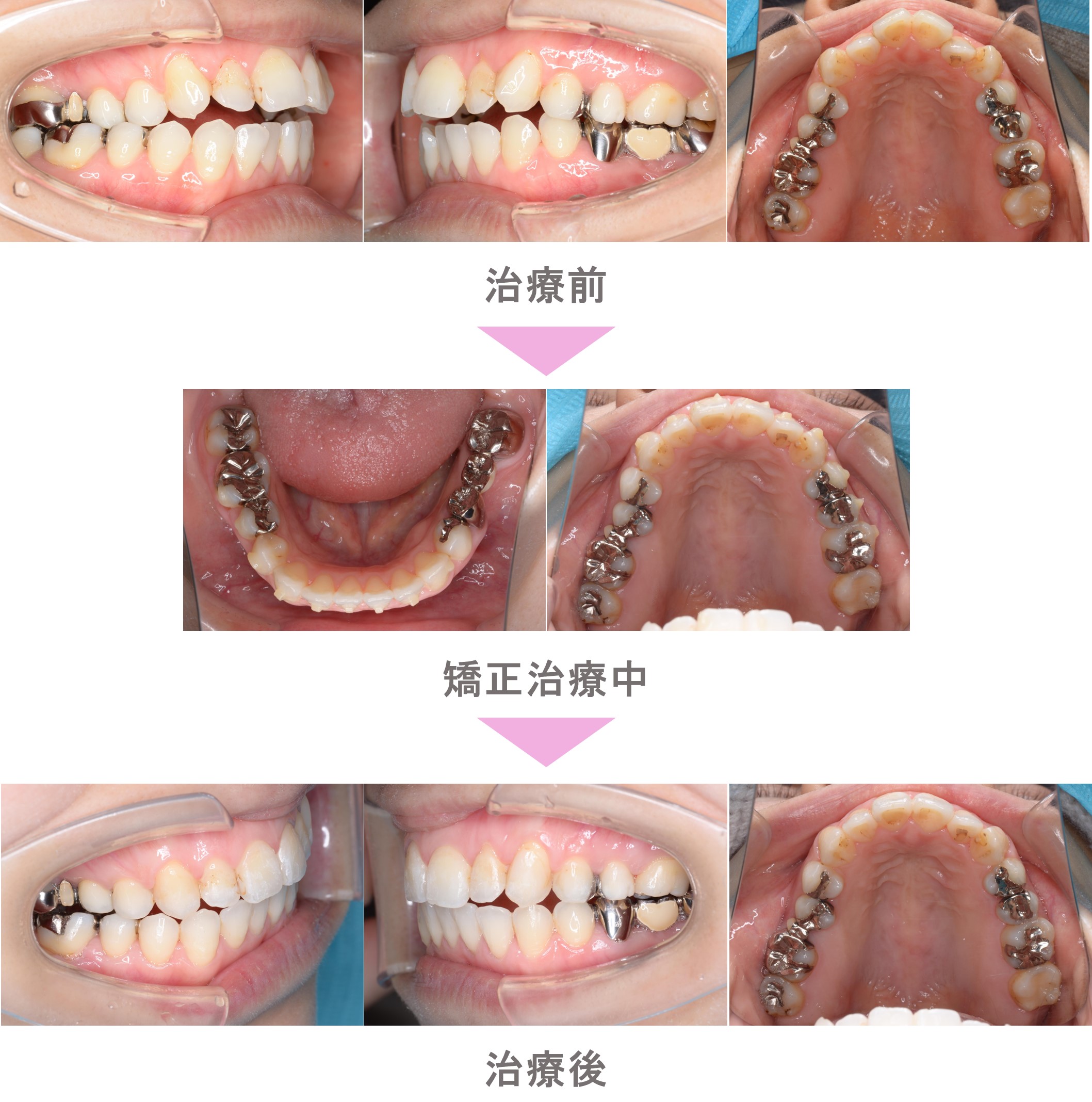 部分矯正(プチ矯正)・インビザラインライト(マウスピース矯正)の症例紹介|開咬(オープンバイト)と叢生(前歯のでこぼこ)と出っ歯(上顎前突)の症状|非抜歯による矯正治療|治療期間は10か月(神奈川県横浜市・40代女性 )