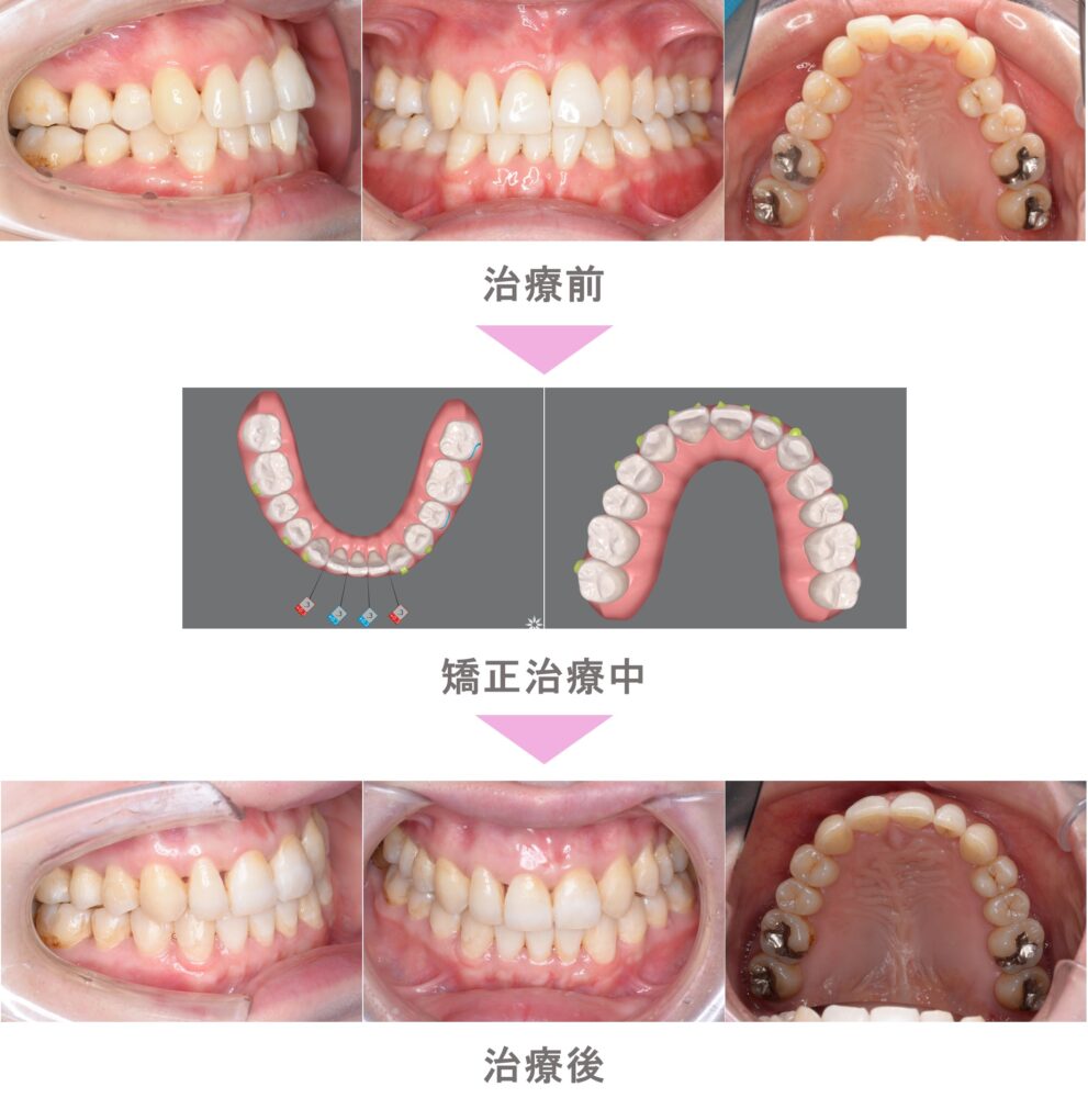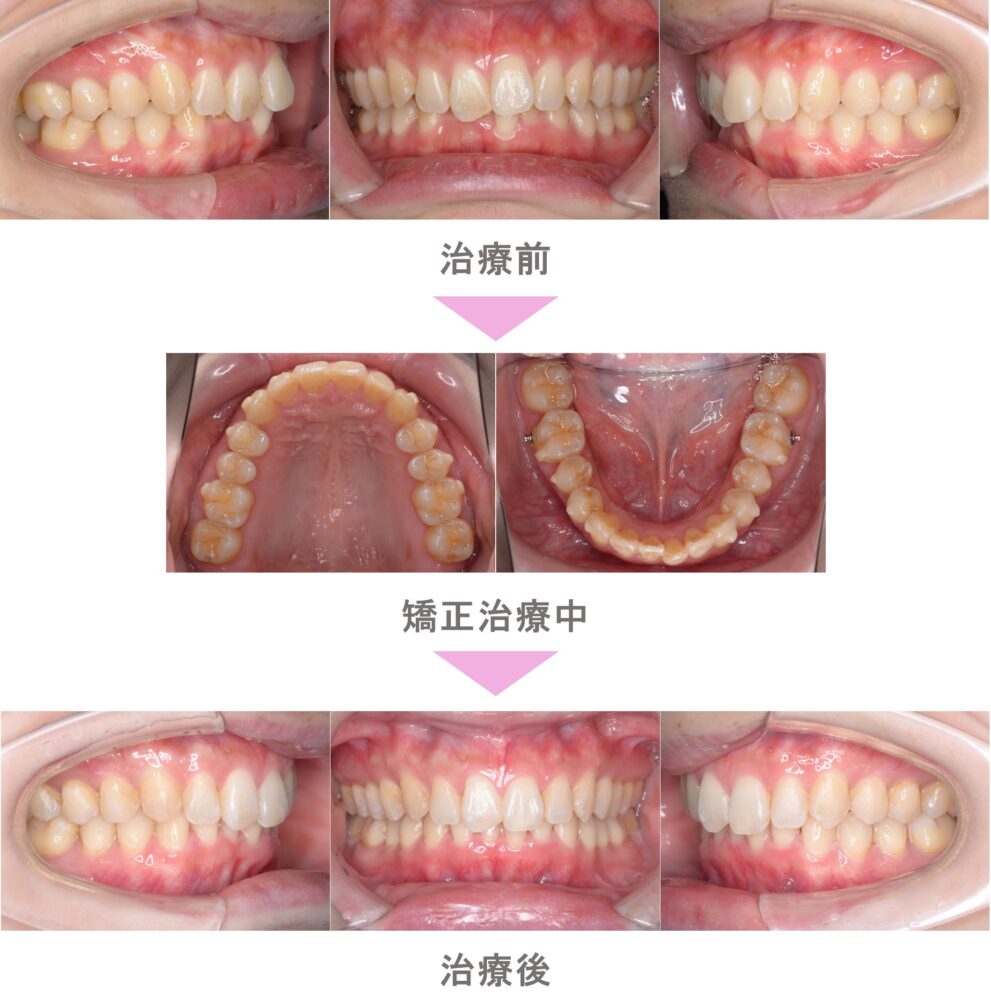 インビザライン矯正(マウスピース矯正)の症例紹介|叢生(前歯のでこぼこ)の症状|抜歯による矯正治療|治療期間は1年8か月(神奈川県川崎市・40代女性 )