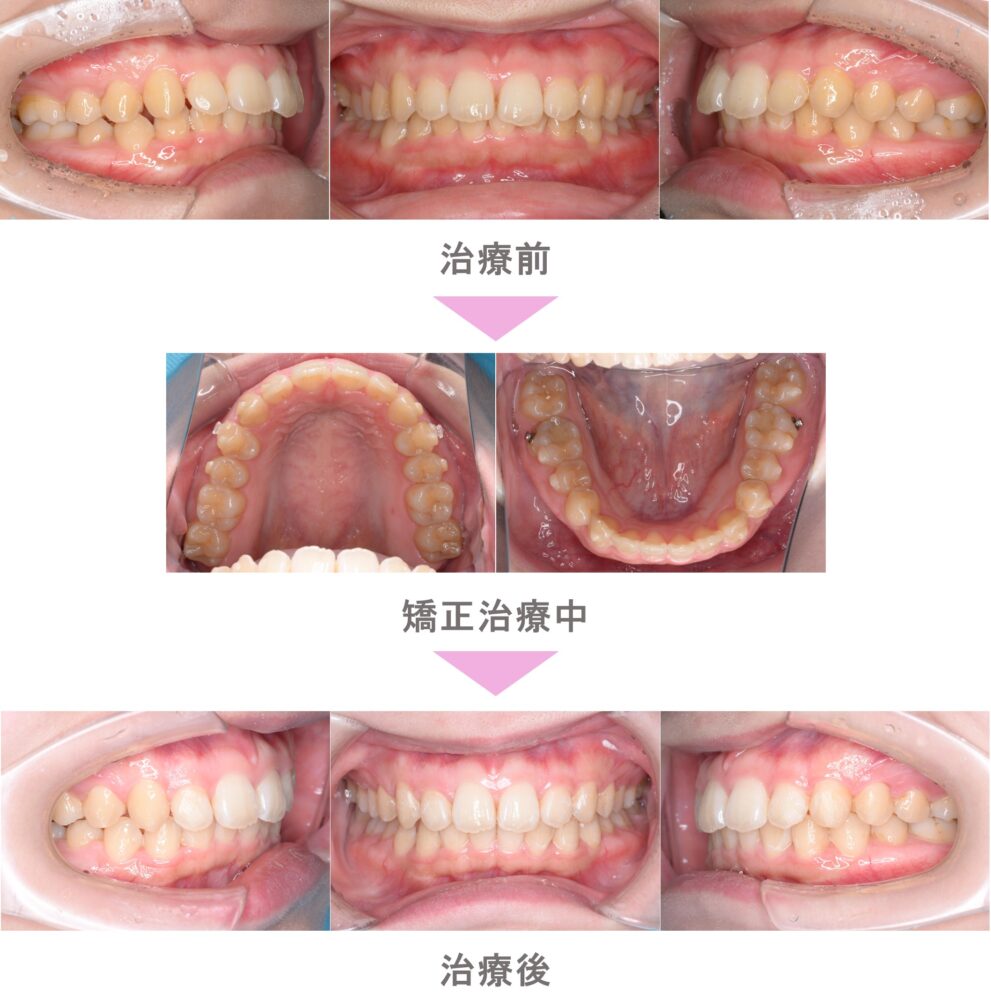 部分矯正(プチ矯正)・インビザラインライト(マウスピース矯正)の症例紹介|出っ歯(上顎前突)と過蓋咬合(深噛み)の症状|非抜歯による矯正治療|治療期間は1年2か月(東京都世田谷区・30代女性 )