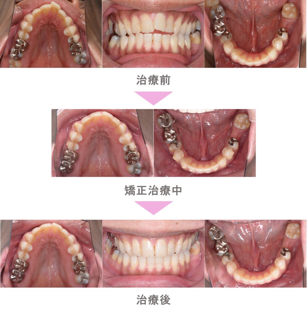 インビザライン矯正(マウスピース矯正)の症例紹介|叢生(前歯のでこぼこ)と出っ歯(上顎前突)の症状|非抜歯による矯正治療|治療期間は2年3か月(東京都港区・20代女性 )