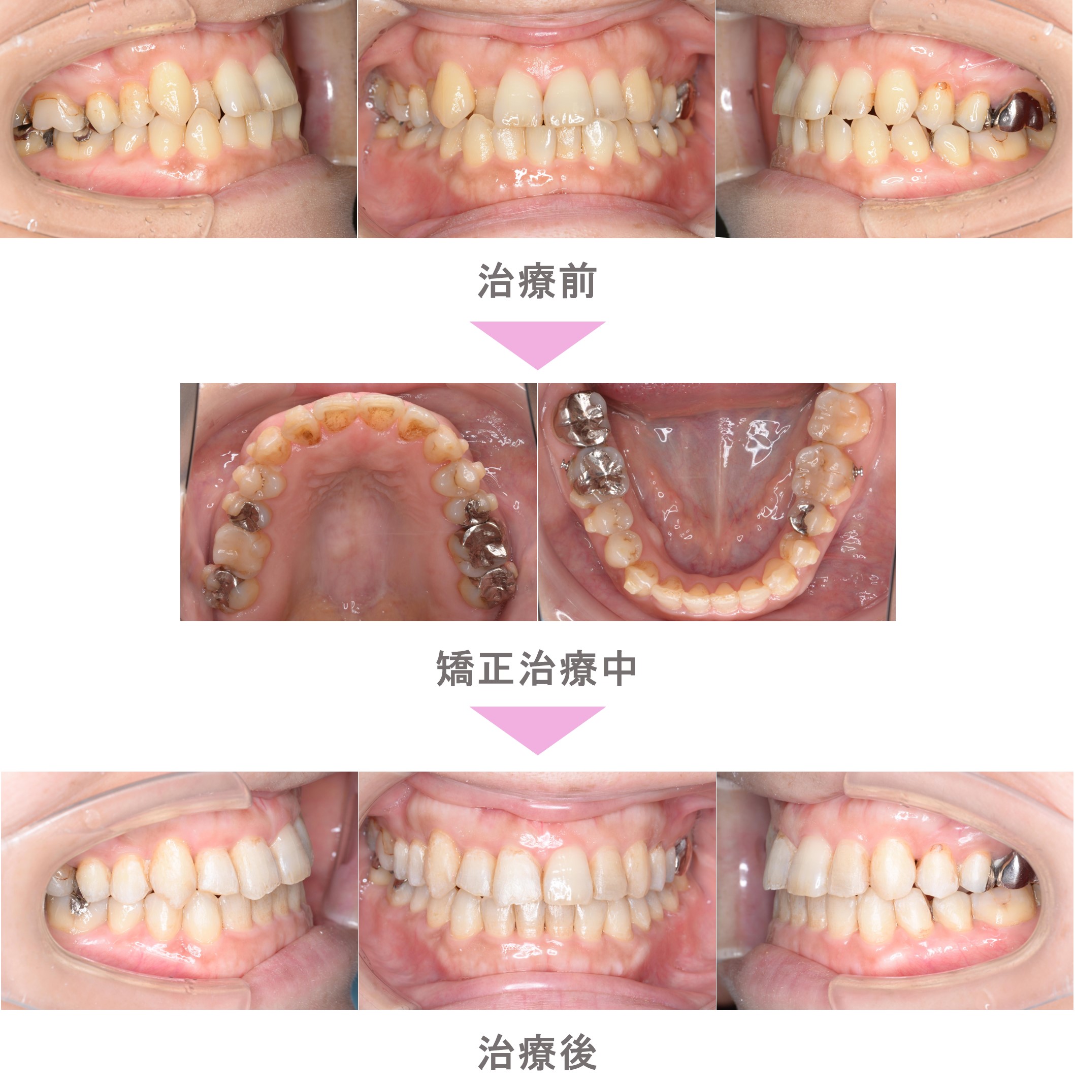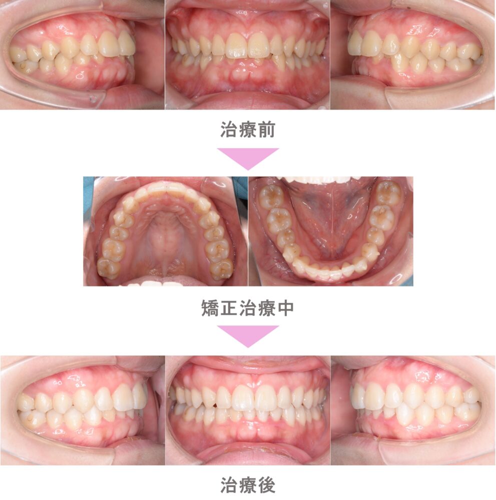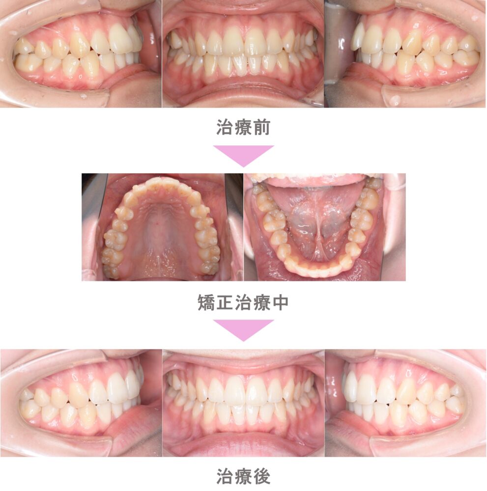 インビザライン矯正(マウスピース矯正)の症例紹介|叢生(前歯のでこぼこ)の症状|非抜歯による矯正治療|治療期間は1年3か月(東京都目黒区・50代女性 )