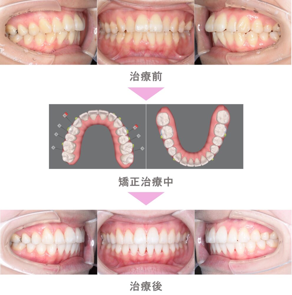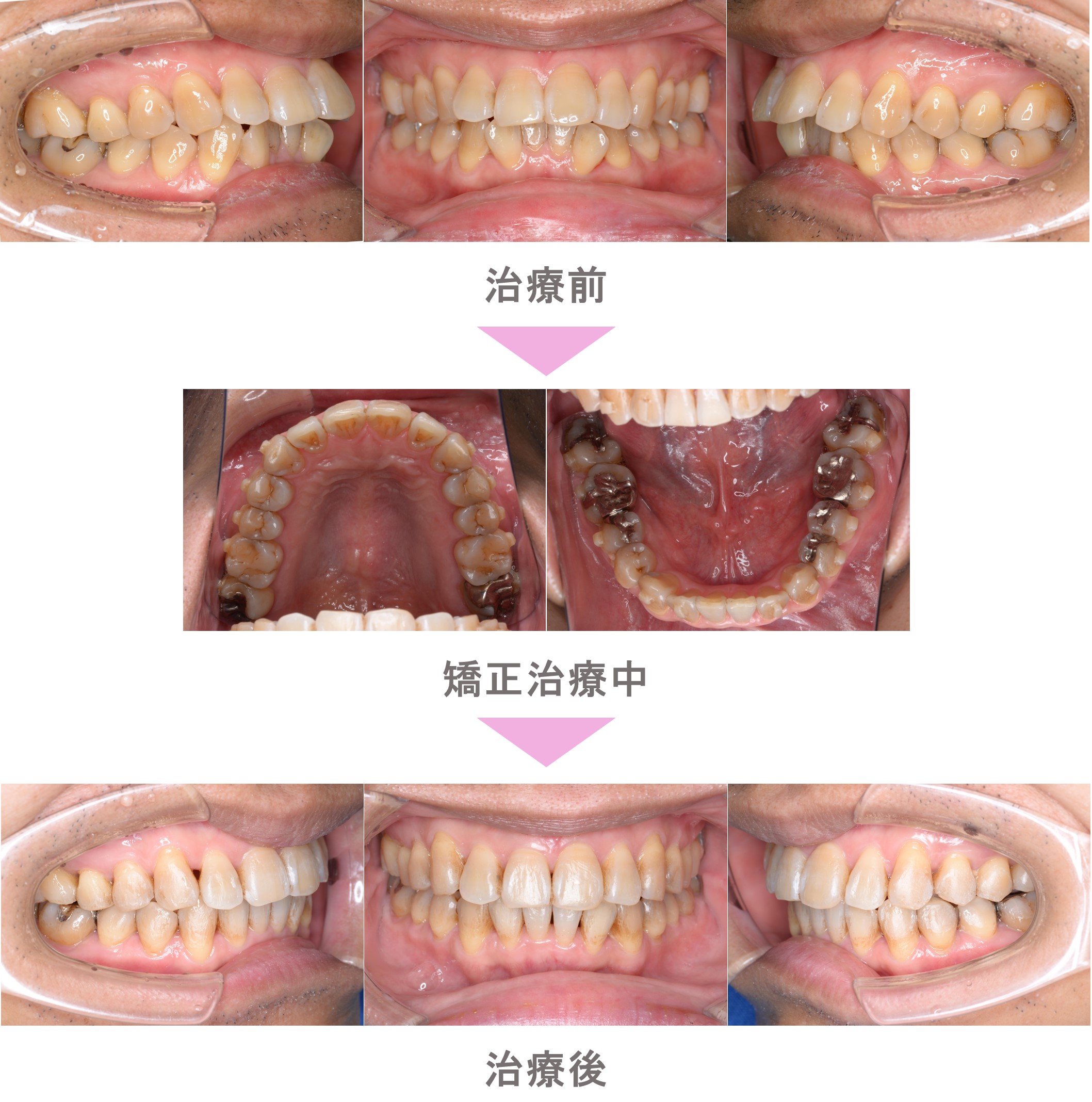 インビザライン矯正(マウスピース矯正)の症例紹介|叢生(前歯のでこぼこ)と出っ歯(上顎前突)の症状|非抜歯による矯正治療|治療期間は1年6か月(東京都世田谷区・40代男性 )
