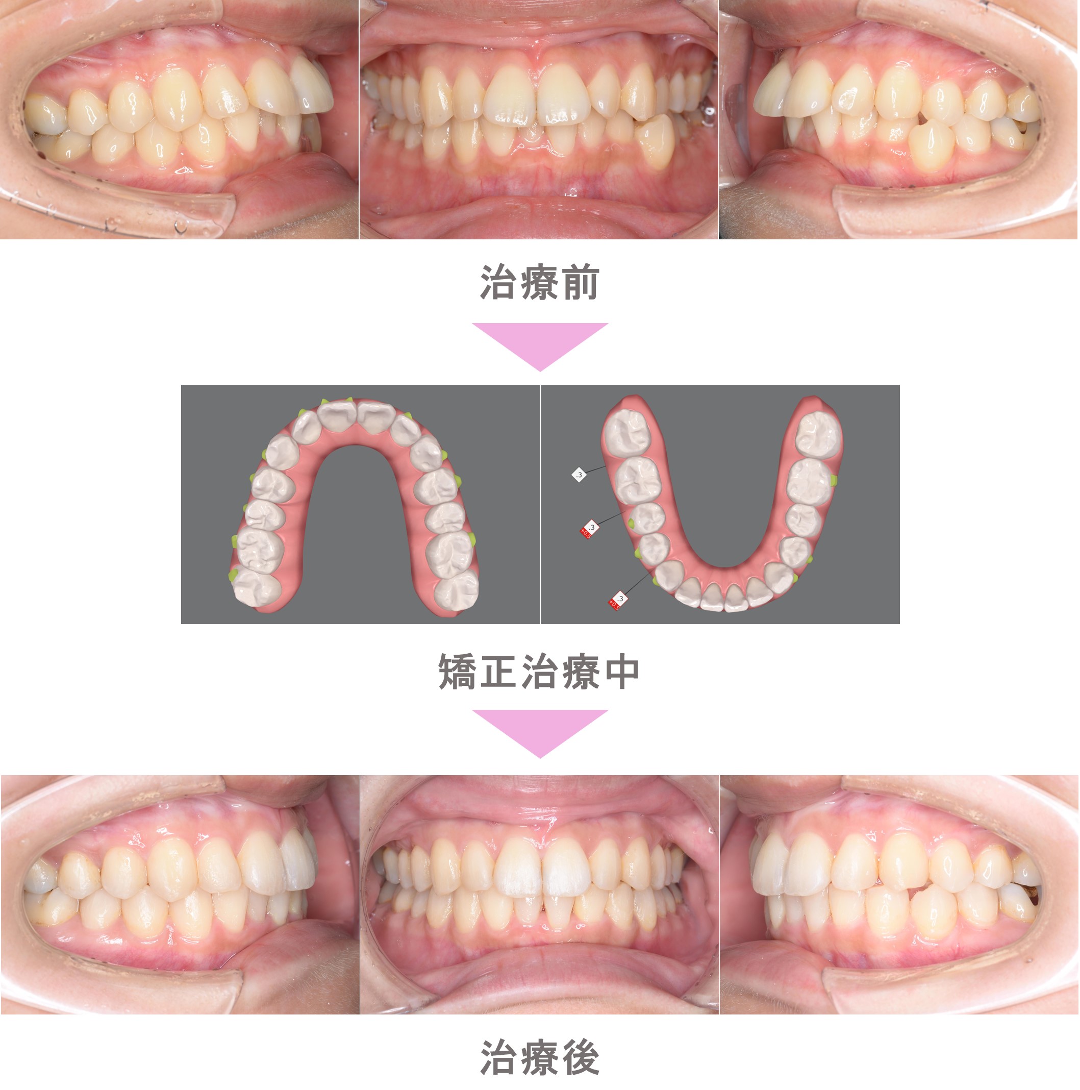 インビザライン矯正(マウスピース矯正)の症例紹介|過蓋咬合(深噛み)と出っ歯(上顎前突)の症状|非抜歯による矯正治療|治療期間は2年1か月(神奈川県川崎市・30代女性 )