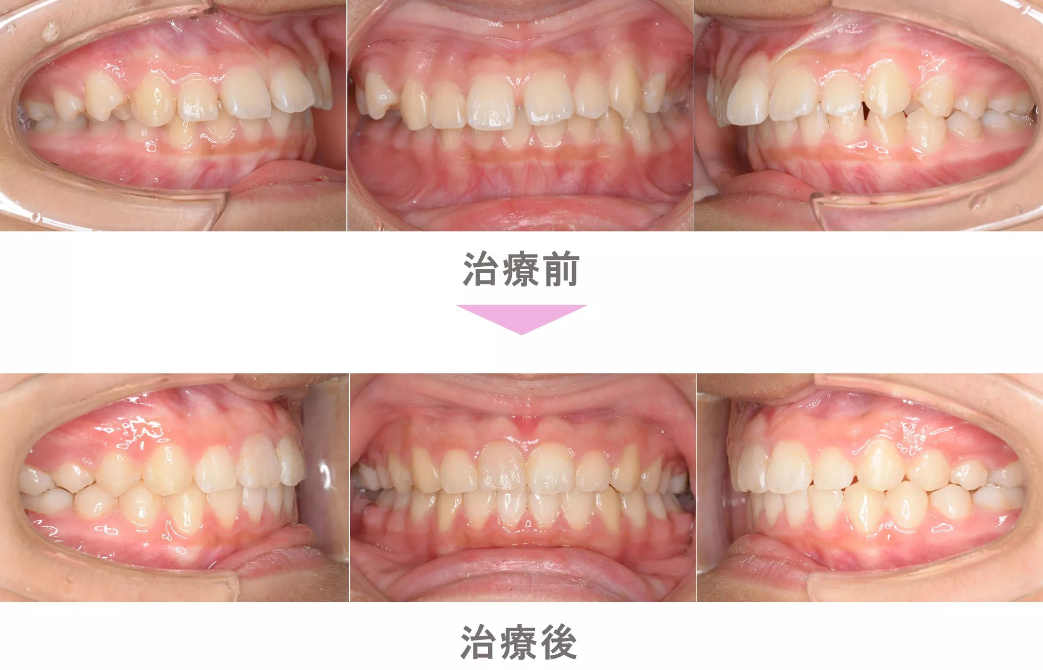 裏側矯正(舌側矯正)の症例紹介|出っ歯(上顎前突)とすきっ歯(空隙歯列)と過蓋咬合(深噛み)の症状|非抜歯による矯正治療|治療期間は2年6ヶ月(神奈川県横浜市・小学生女子 )