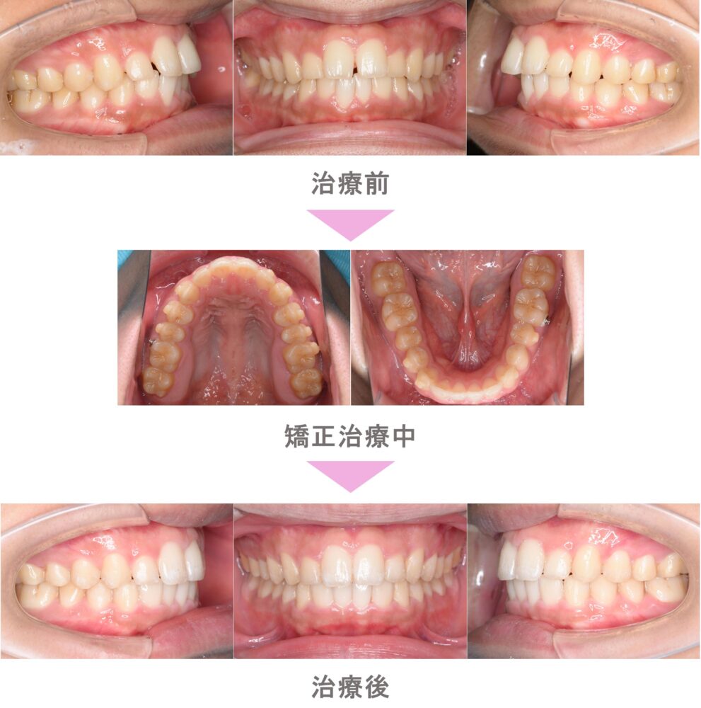部分矯正(プチ矯正)・インビザラインライト(マウスピース矯正)の症例紹介|すきっ歯(空隙歯列)と出っ歯(上顎前突)の症状|非抜歯による再矯正治療(後戻り・失敗)|治療期間は5か月(東京都世田谷区・大学生女性 )