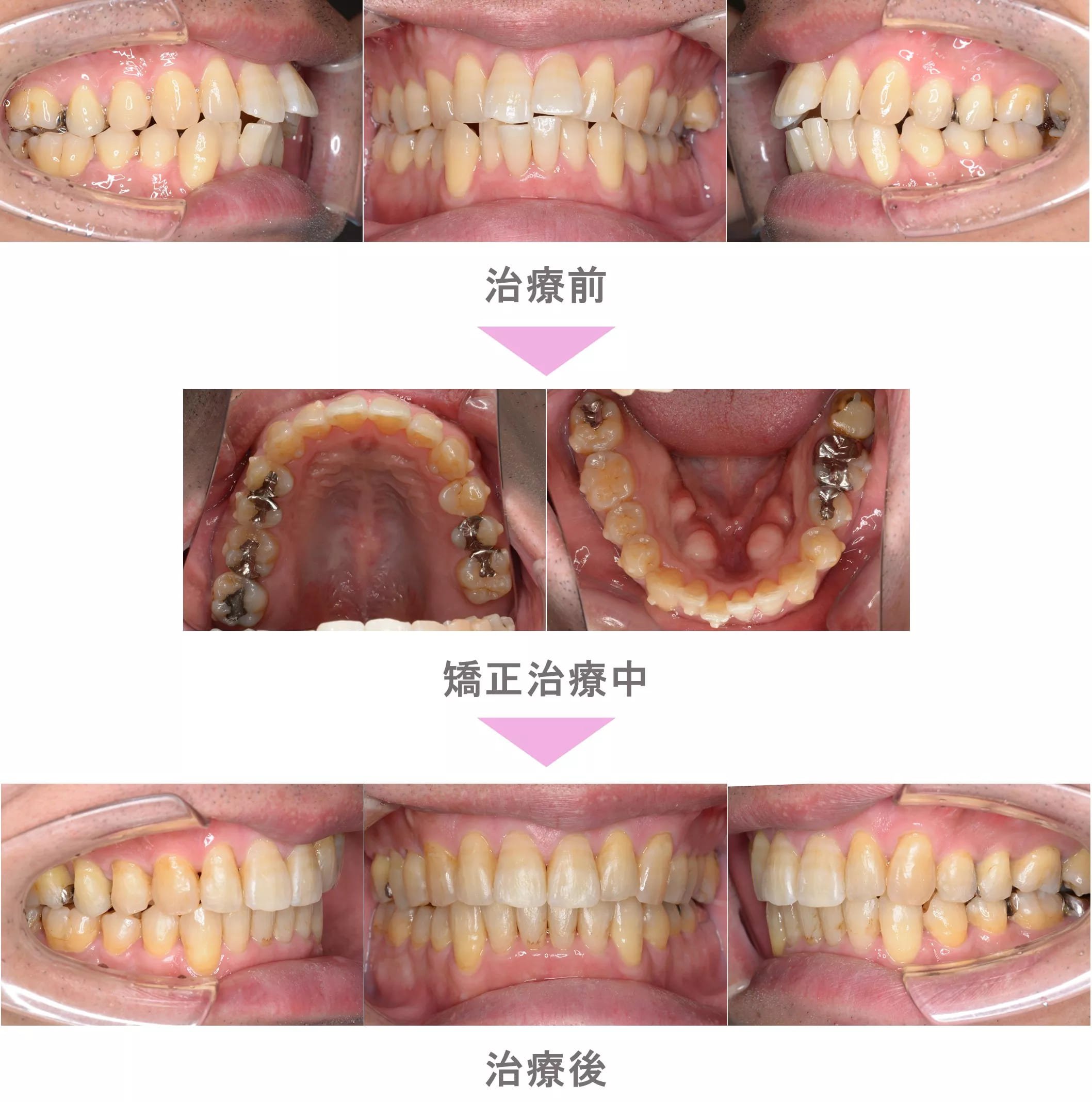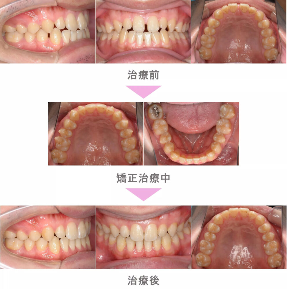 インビザライン矯正(マウスピース矯正)の症例紹介|叢生(前歯のでこぼこ)と上下顎前突(口ゴボ)の症状|非抜歯による矯正治療|治療期間は1年4か月(神奈川県川崎市・40代男性)