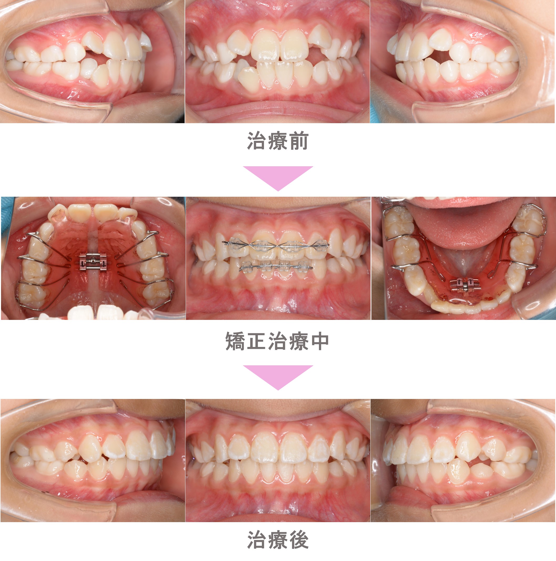 小児矯正(子供矯正)の症例紹介|叢生(前歯のでこぼこ)の症状|非抜歯による矯正治療|治療期間は1年10か月(東京都世田谷区・小学生女子 )