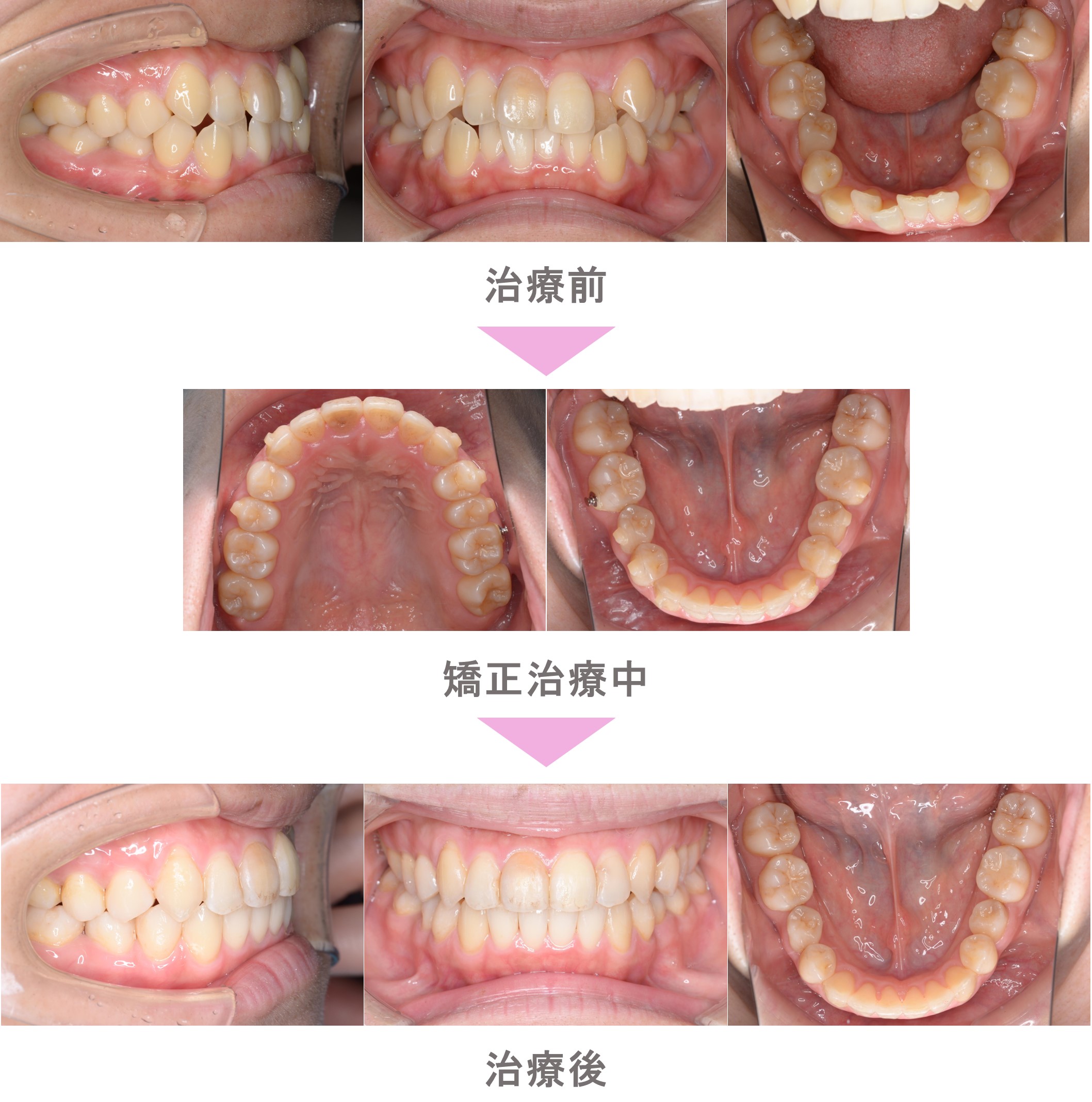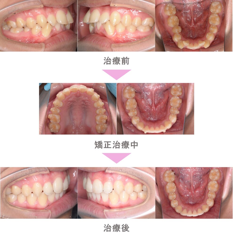 インビザライン矯正(マウスピース矯正)の症例紹介|叢生(前歯のでこぼこ)と八重歯(犬歯突出)と交叉咬合(すれ違い)の症状|非抜歯による矯正治療|治療期間は2年10か月(東京都文京区・30代女性 )