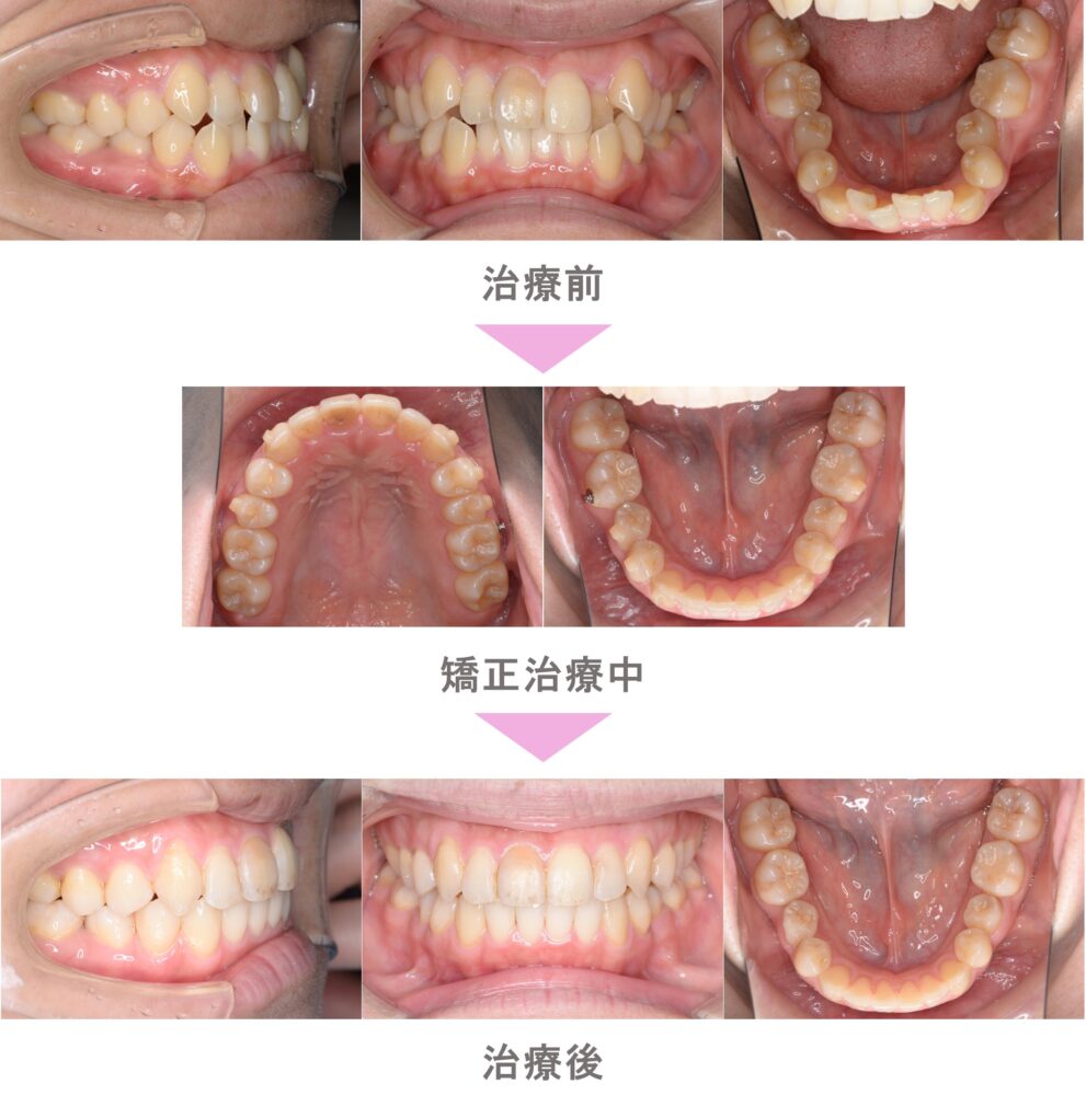 部分矯正(プチ矯正)・インビザラインライト(マウスピース矯正)の症例紹介|叢生(前歯のでこぼこ)出っ歯(上顎前突)の症状|非抜歯による矯正治療|治療期間は7か月(東京都世田谷区・20代女性 )