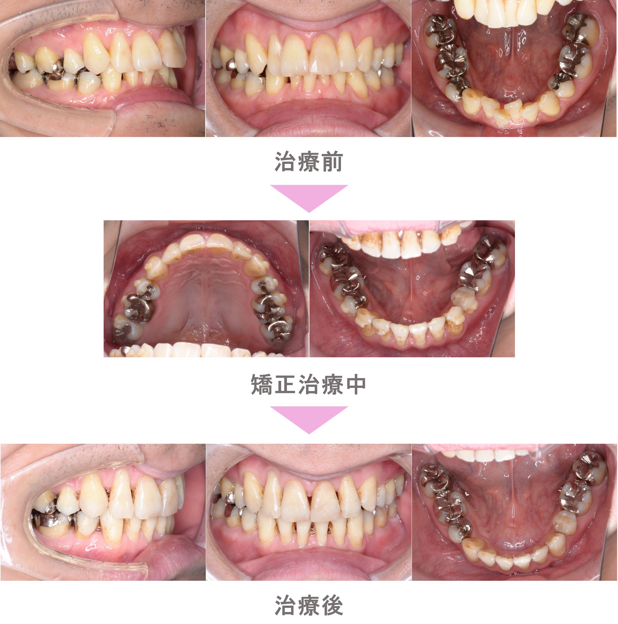 インビザライン矯正(マウスピース矯正)の症例紹介|叢生(前歯のでこぼこ)と過蓋咬合(深噛み)の症状|非抜歯による矯正治療|治療期間は1年5か月(神奈川県横浜市・40代男性 )