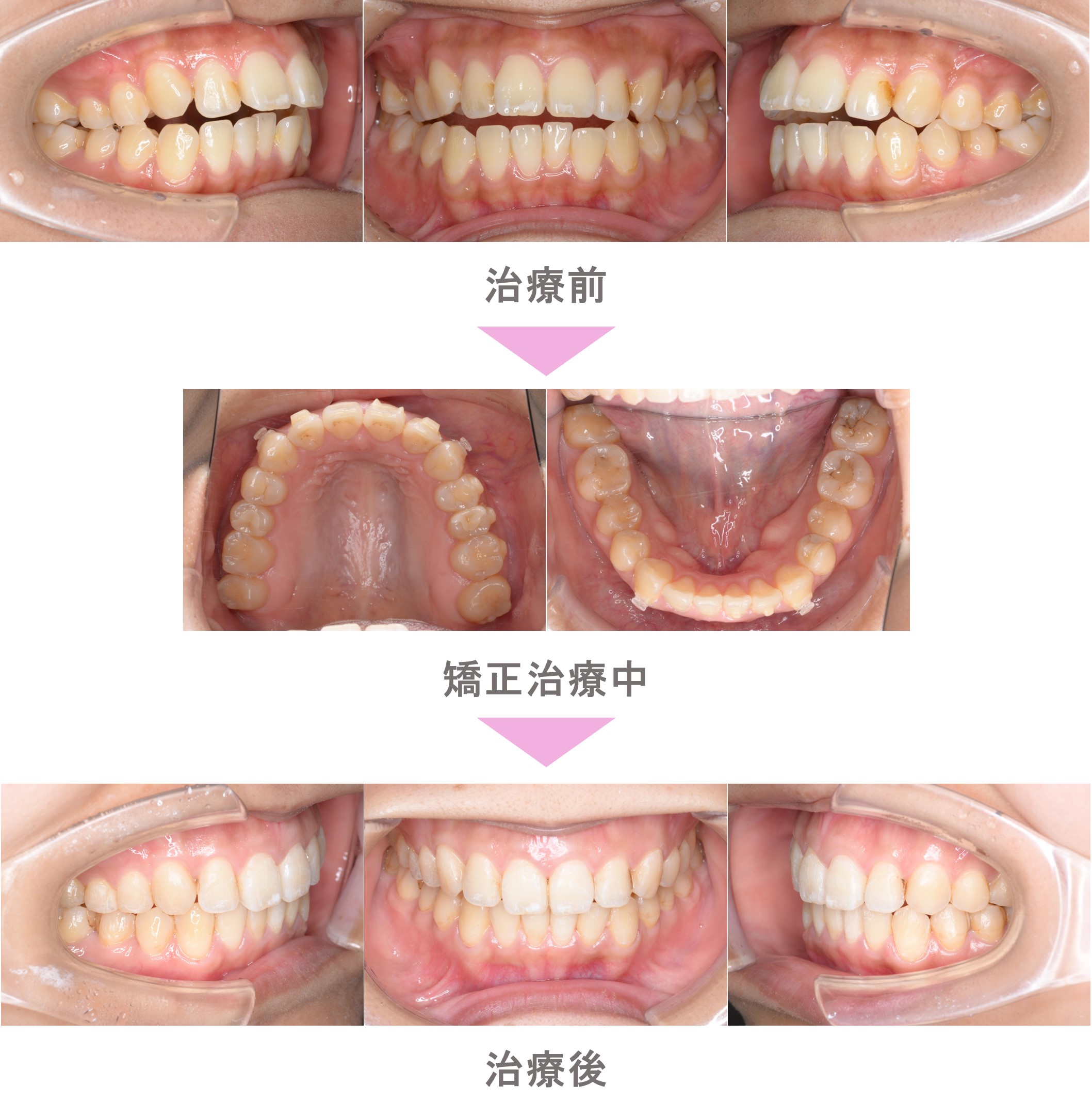 インビザライン矯正(マウスピース矯正)の症例紹介|開咬(オープンバイト)と出っ歯(上顎前突)の症状|非抜歯による矯正治療|治療期間は1年6か月(神奈川県大和市・20代女性 )