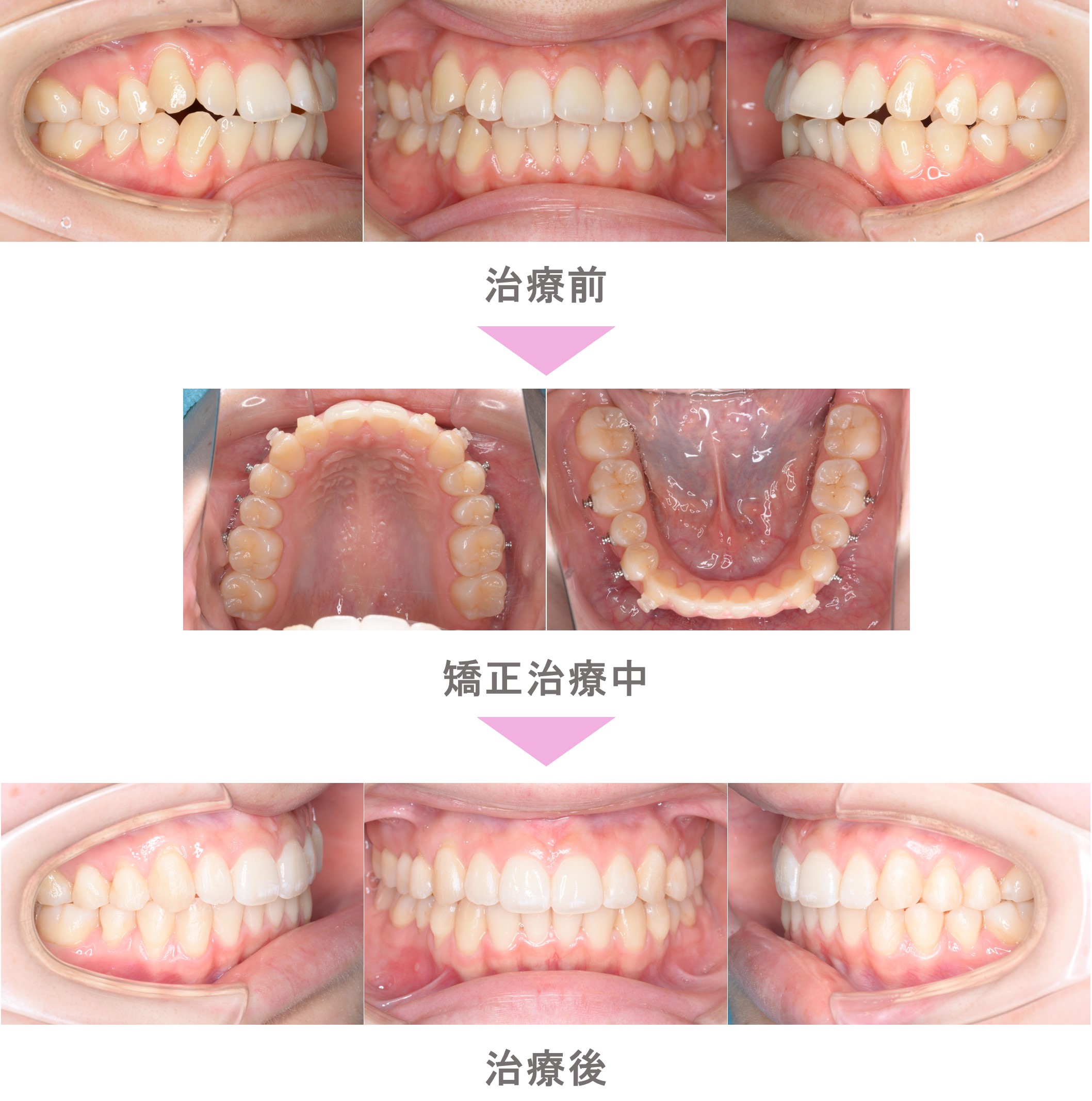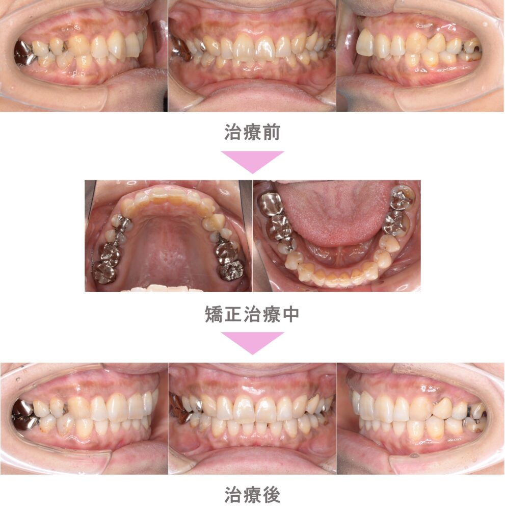 インビザライン矯正(マウスピース矯正)の症例紹介|叢生(前歯のでこぼこ)と出っ歯(上顎前突)の症状|非抜歯による矯正治療|治療期間は1年7か月(東京都世田谷区・20代女性 )