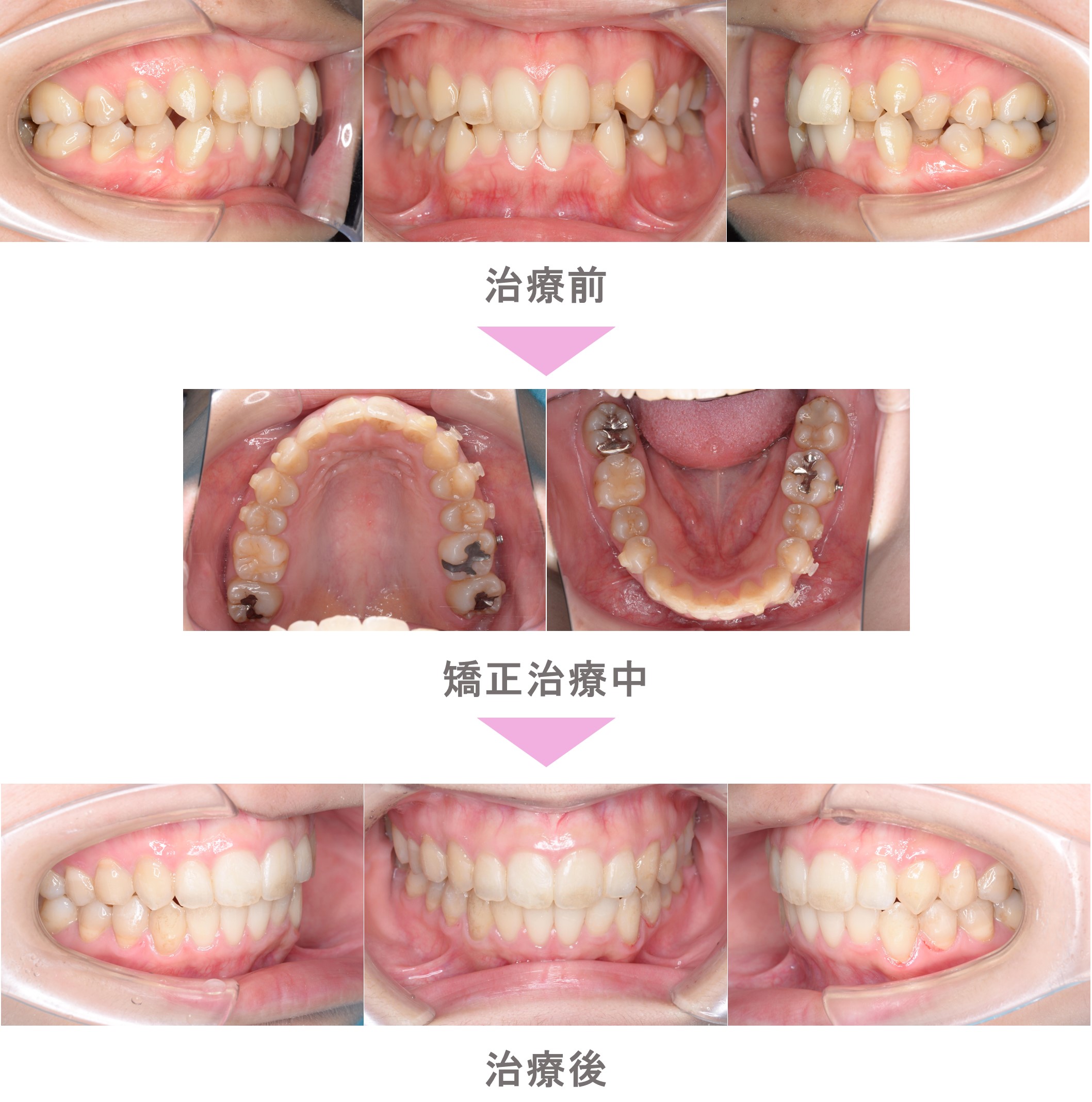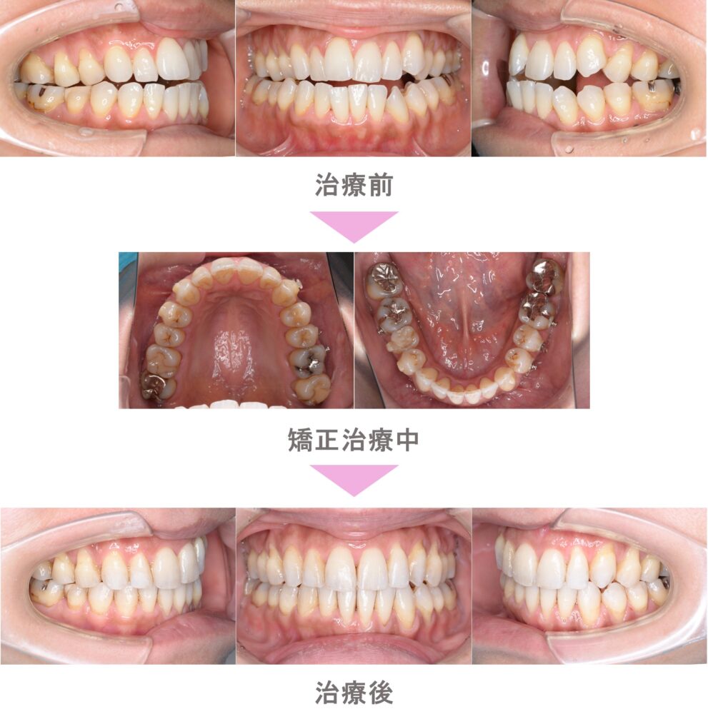 インビザライン矯正(マウスピース矯正)の症例紹介|叢生(前歯のでこぼこ)と八重歯(犬歯突出)の症状|非抜歯による矯正治療|治療期間は2年2か月(東京都武蔵野市・30代女性 )