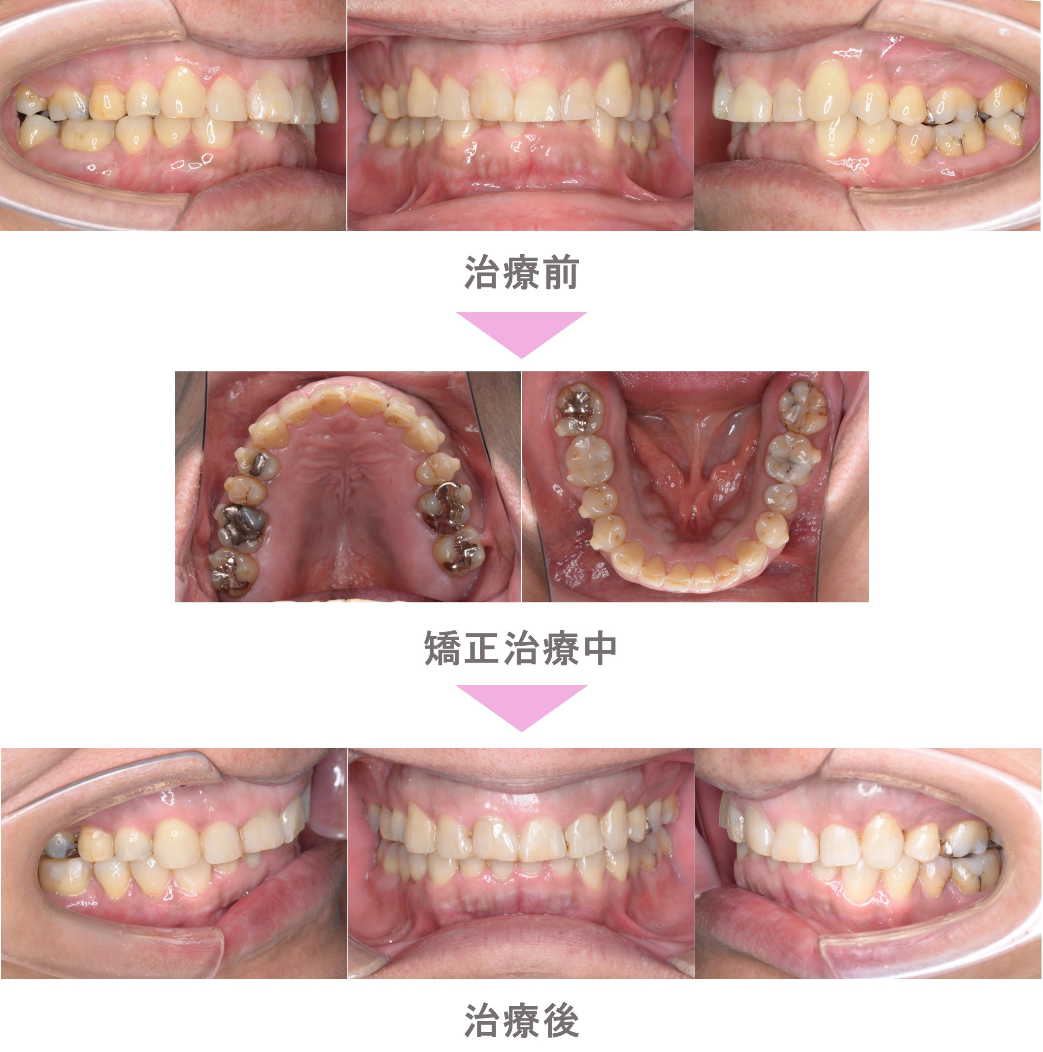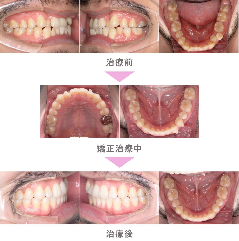 インビザライン矯正(マウスピース矯正)の症例紹介|叢生(前歯のでこぼこ)と過蓋咬合(深噛み)の症状|抜歯による矯正治療|治療期間は2年(東京都町田市・40代男性 )