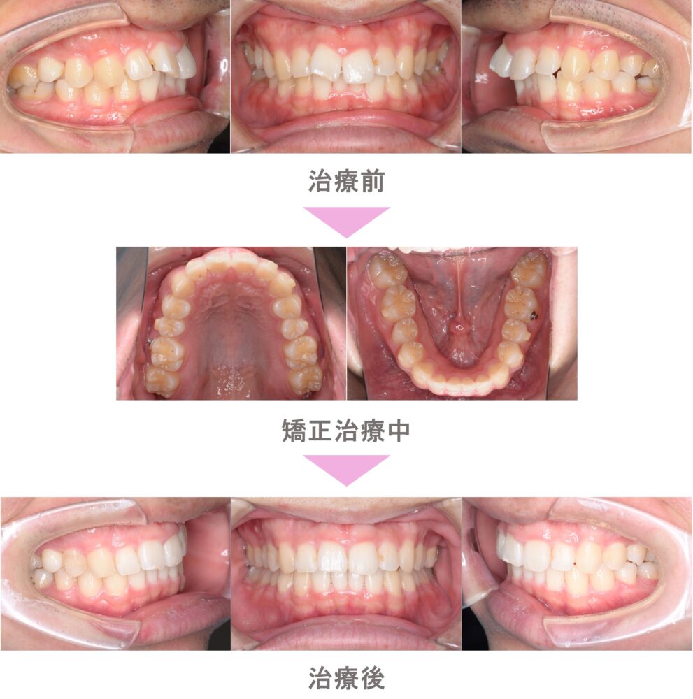 インビザラインファースト(小児矯正)の症例のご紹介です。この患者様は、東京都世田谷区内からご来院の小学生女子で、出っ歯(上顎前突)と叢生(前歯のでこぼこ)と過蓋咬合(深噛み)の症状がありました。治療法はインビザラインファーストで、治療期間は8か月です。上下正中の空隙閉鎖と過蓋咬合(深噛み)の改善、上下歯列の拡大と側方歯萌出スペースを確保しました。第二大臼歯萌出後、歯列が崩れた場合は、二期治療が必要になります。