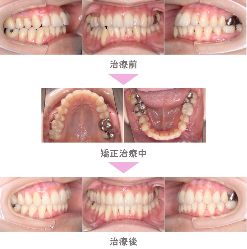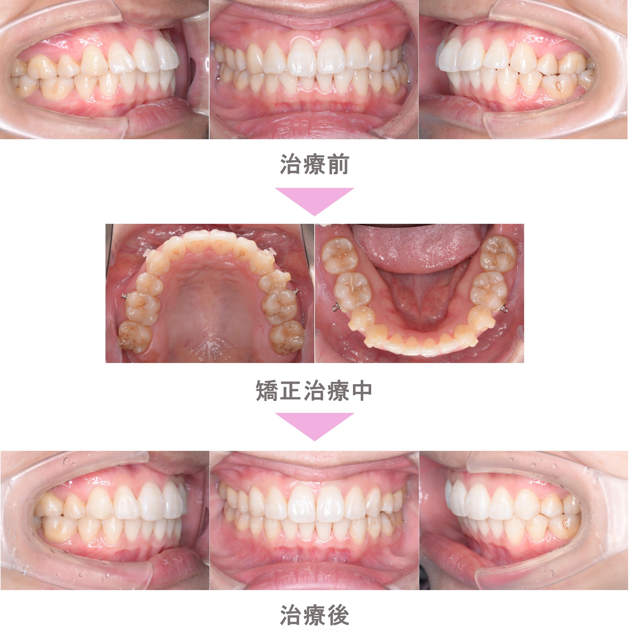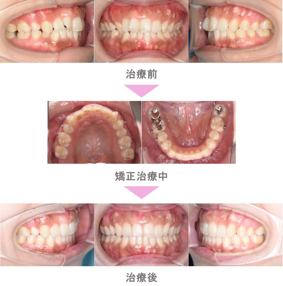 インビザライン矯正(マウスピース矯正)の症例紹介|叢生(前歯のでこぼこ)と上下顎前突(口ゴボ)と出っ歯(上顎前突)の症状|非抜歯による再矯正治療(後戻り・失敗)|治療期間は1年(東京都大田区・30代女性 )