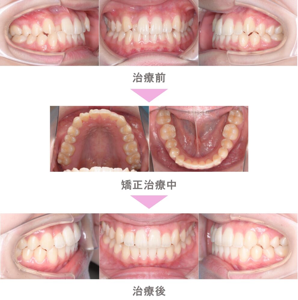 インビザライン矯正(マウスピース矯正)の症例紹介|すきっ歯(空隙歯列)と過蓋咬合(深噛み)の症状|非抜歯による矯正治療|治療期間は1年5か月(東京都世田谷区・20代女性 )
