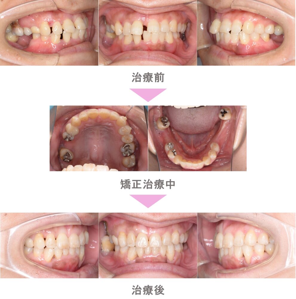 インビザライン矯正(マウスピース矯正)の症例紹介|叢生(前歯のでこぼこ)とすきっ歯(空隙歯列)の症状|非抜歯による矯正治療|治療期間は1年3か月(東京都多摩市・大学生男性 )