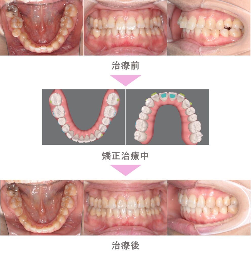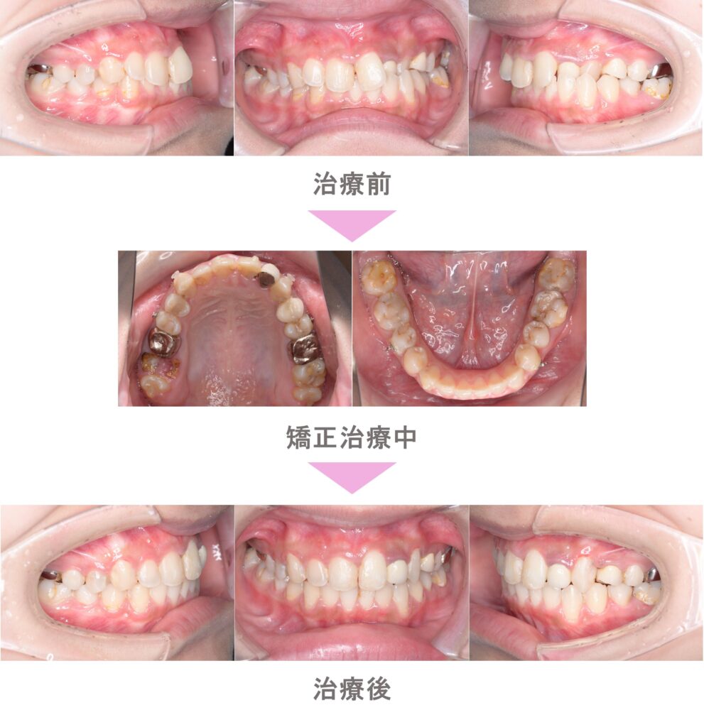 インビザライン矯正(マウスピース矯正)の症例紹介|上下顎前突と(口ゴボ)と出っ歯(上顎前突)叢生(前歯のでこぼこ)の症状|非抜歯による矯正治療|治療期間は1年9か月(東京都世田谷区・20代女性 )