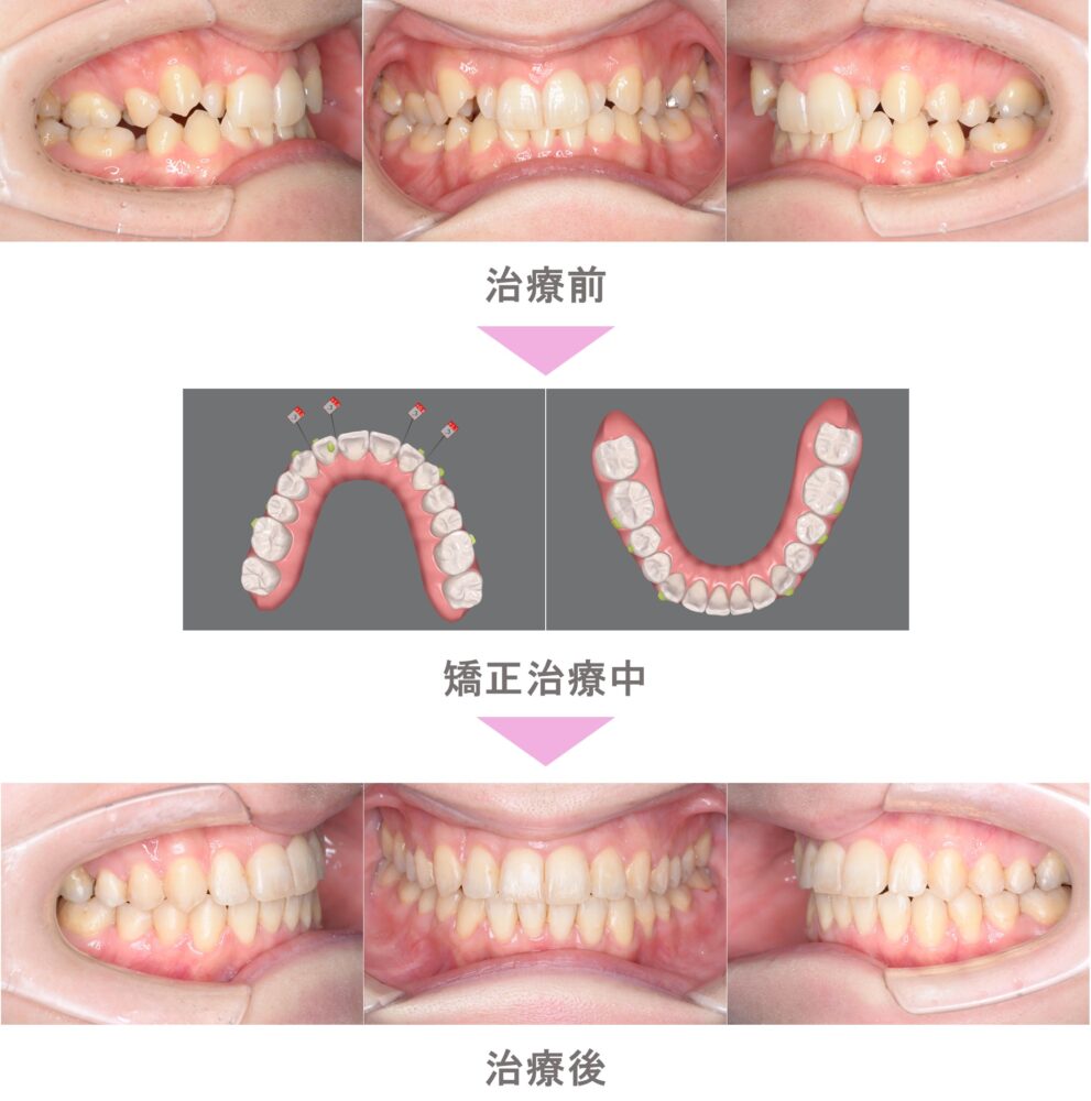 インビザライン矯正(マウスピース矯正)の症例紹介|叢生(前歯のでこぼこ)と交叉咬合(すれ違い)の症状|抜歯による矯正治療|治療期間は2年8か月((神奈川県茅ケ崎市・20代女性 )