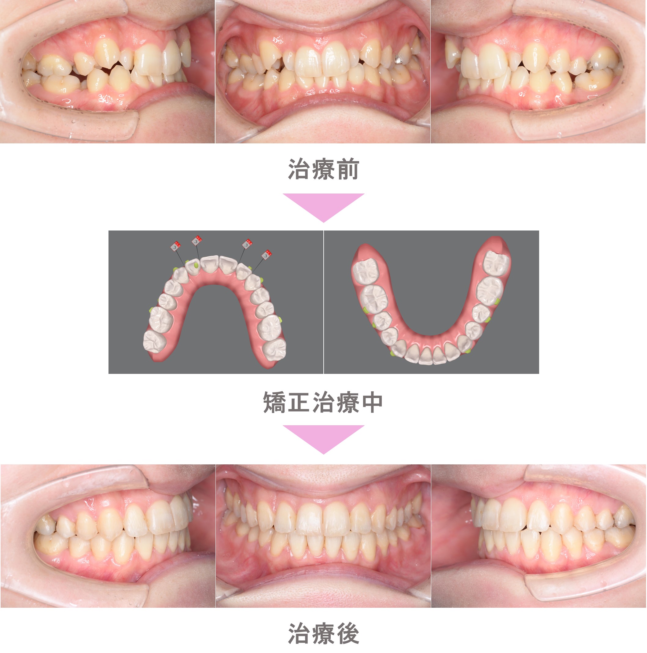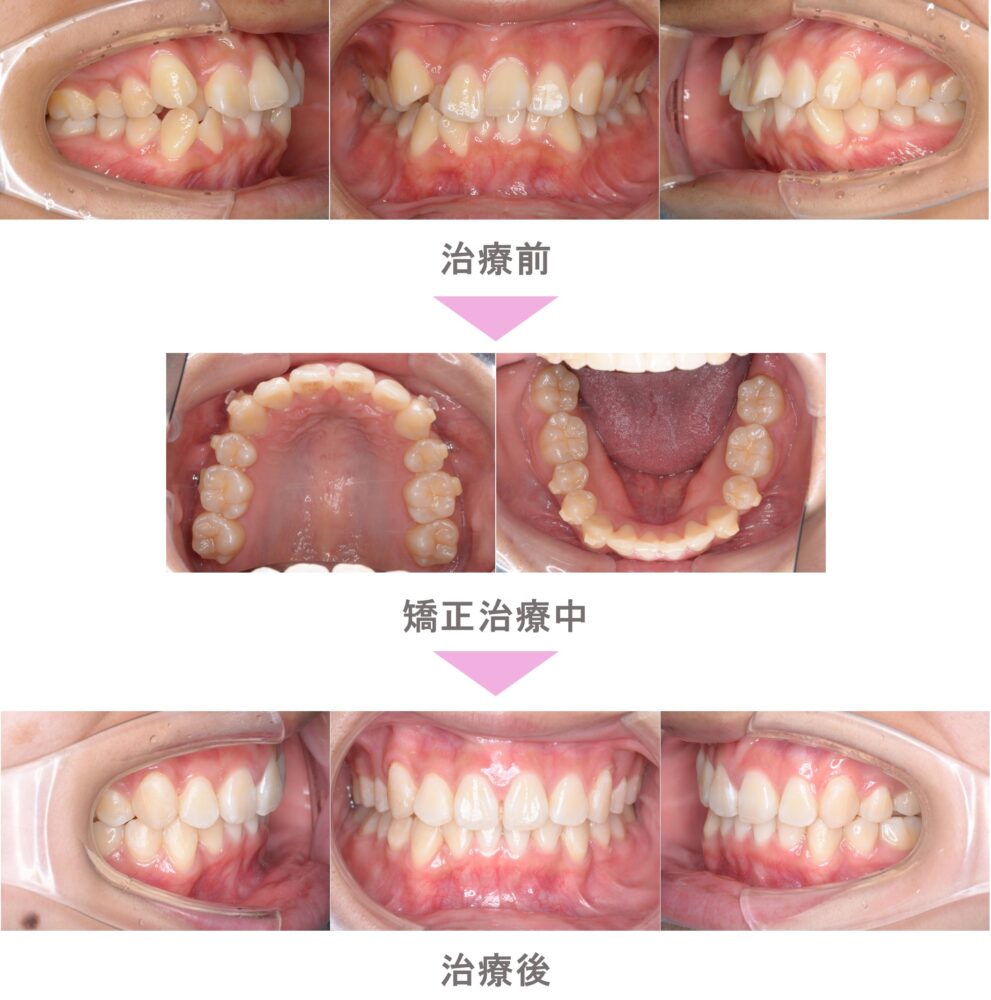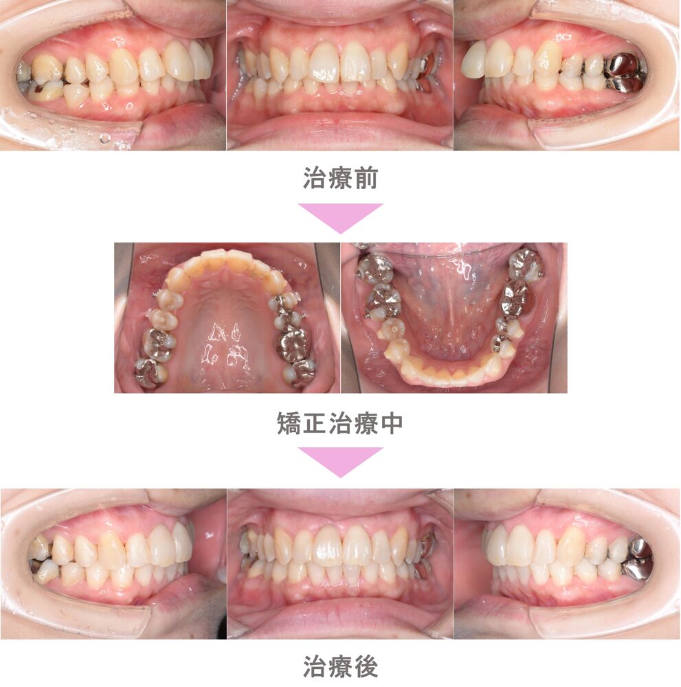 インビザライン矯正(マウスピース矯正)の症例紹介|叢生(前歯のでこぼこ)と過蓋咬合(深噛み)の症状|非抜歯による矯正治療|治療期間は2年1か月(東京都杉並区・40代女性 )
