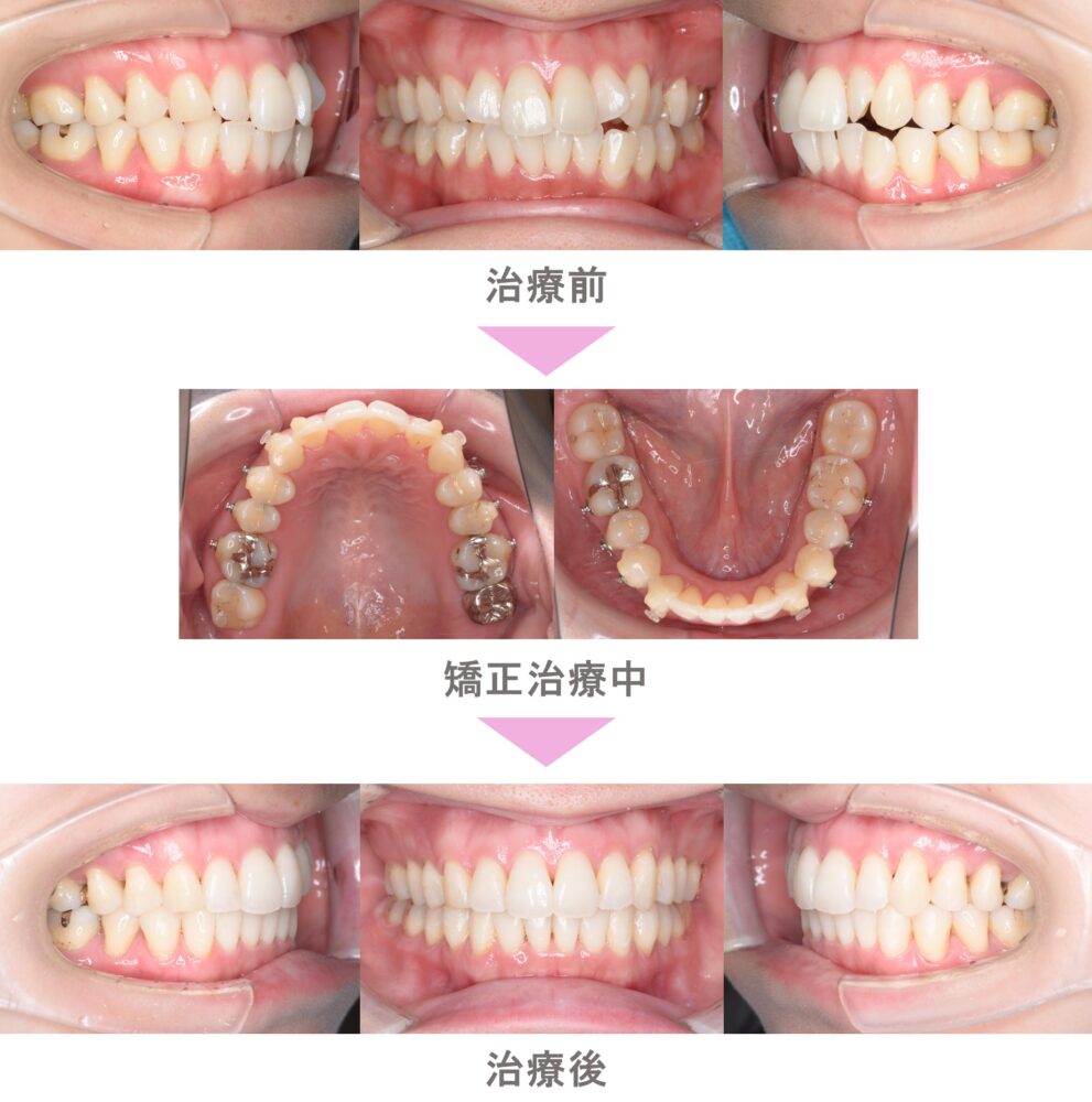 インビザライン矯正(マウスピース矯正)の症例紹介|交叉咬合(すれ違い)と受け口(反対咬合)と叢生(前歯のでこぼこ)の症状|非抜歯による矯正治療|治療期間は1年(東京都世田谷区・中学生女子 )