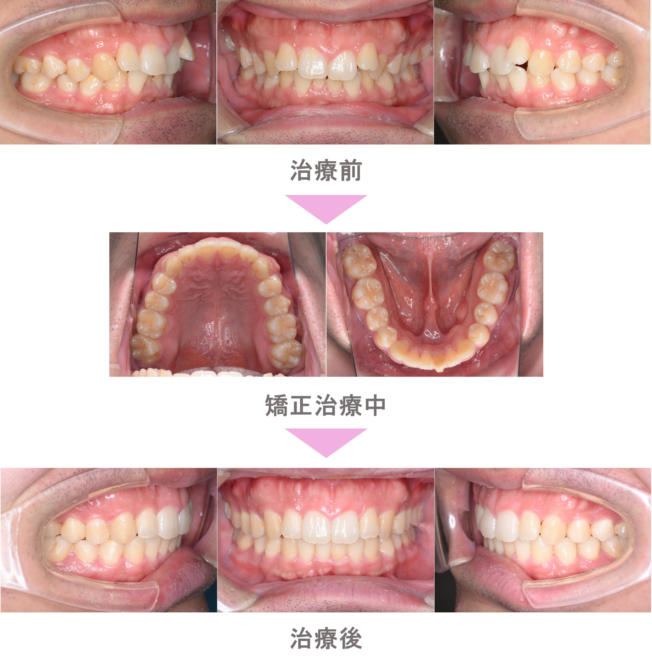 インビザライン矯正(マウスピース矯正)の症例紹介|叢生(前歯のでこぼこ)と過蓋咬合(深噛み)の症状|非抜歯による矯正治療|治療期間は1年8か月(千葉県印西市・30代男性 )
