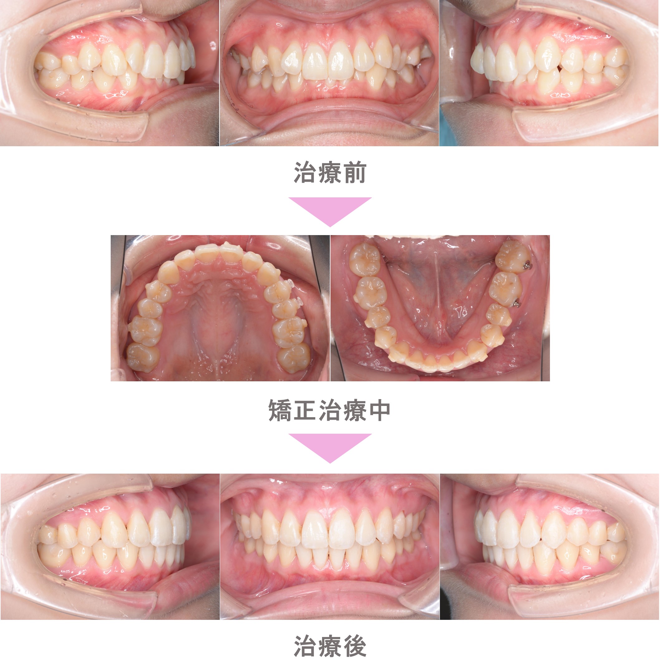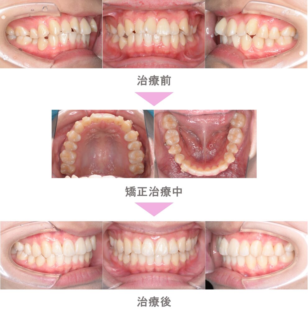 インビザライン矯正(マウスピース矯正)の症例紹介|過蓋咬合(深噛み)と叢生(前歯のでこぼこ)の症状|非抜歯による矯正治療|治療期間は2年2か月(東京都世田谷区・20代女性 )