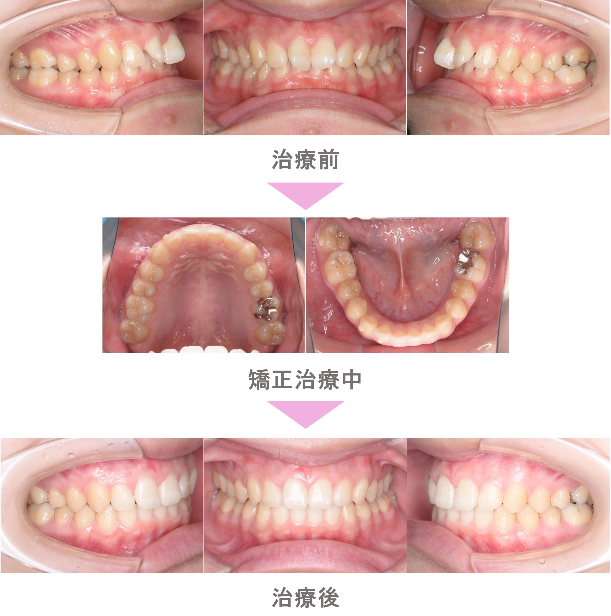 インビザライン矯正(マウスピース矯正)の症例紹介|過蓋咬合(深噛み)と出っ歯(上顎前突)と叢生(前歯のでこぼこ)の症状|非抜歯による矯正治療|治療期間は1年10か月(東京都大田区・20代女性 )