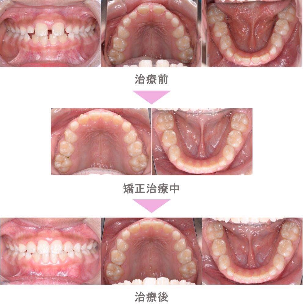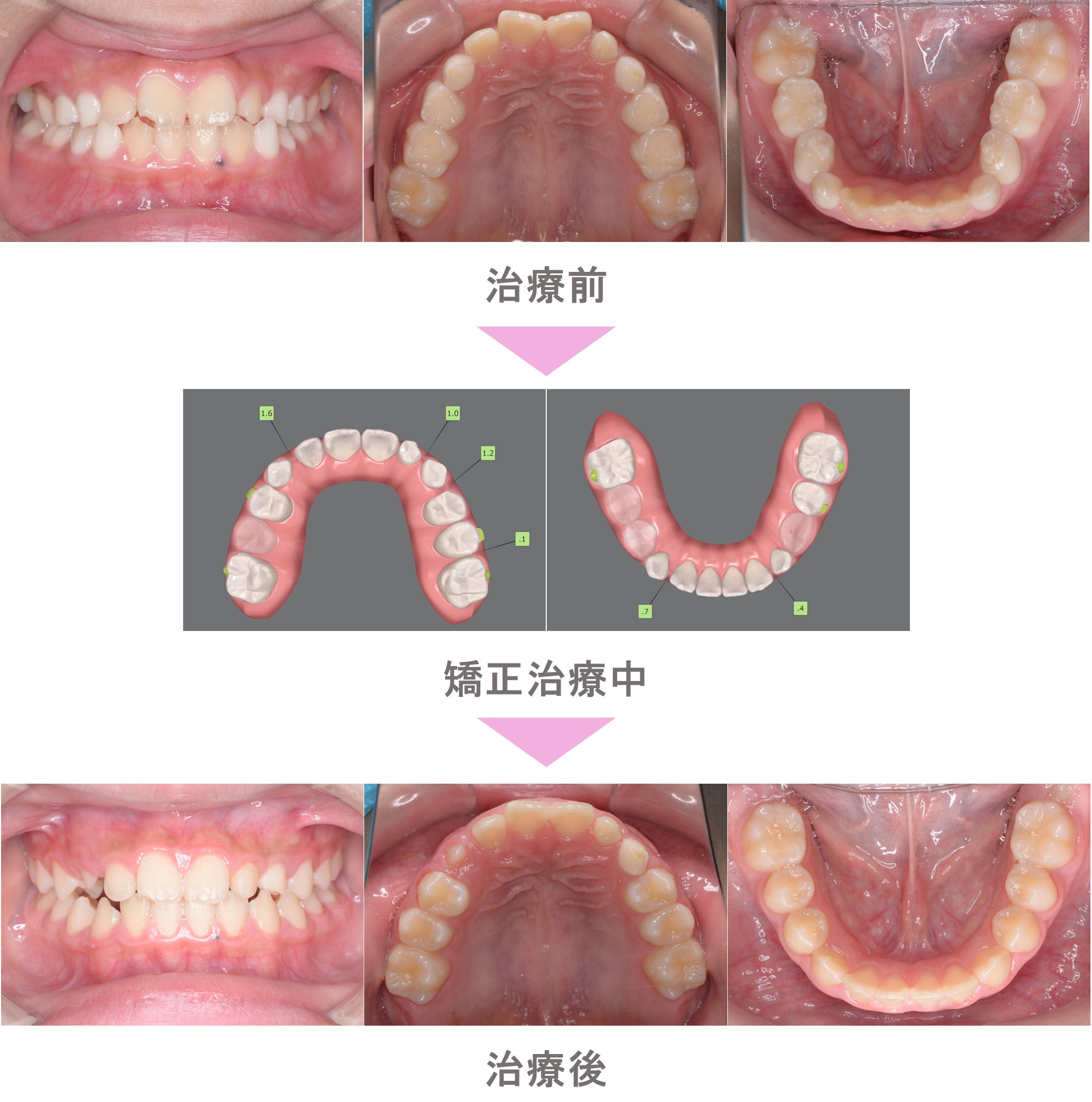 インビザラインファースト(マウスピース小児矯正)の症例紹介|叢生(前歯のでこぼこ)と出っ歯(上顎前突)の症状|非抜歯による矯正治療|治療期間は1年3か月(東京都世田谷区・小学生女子)