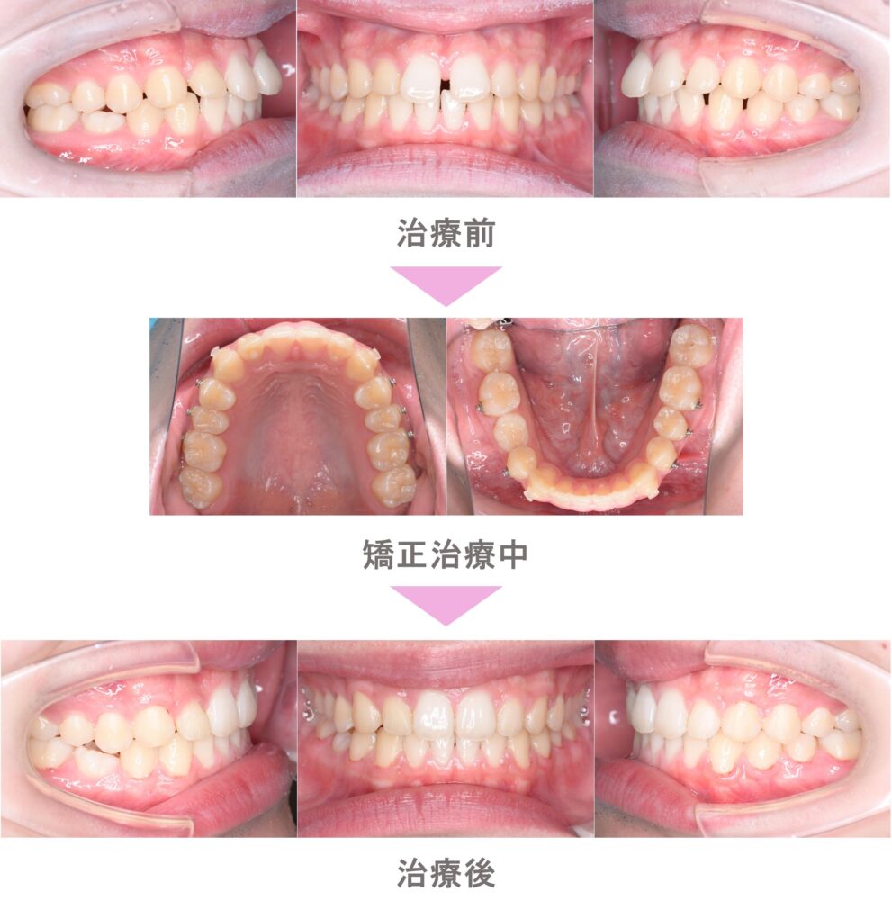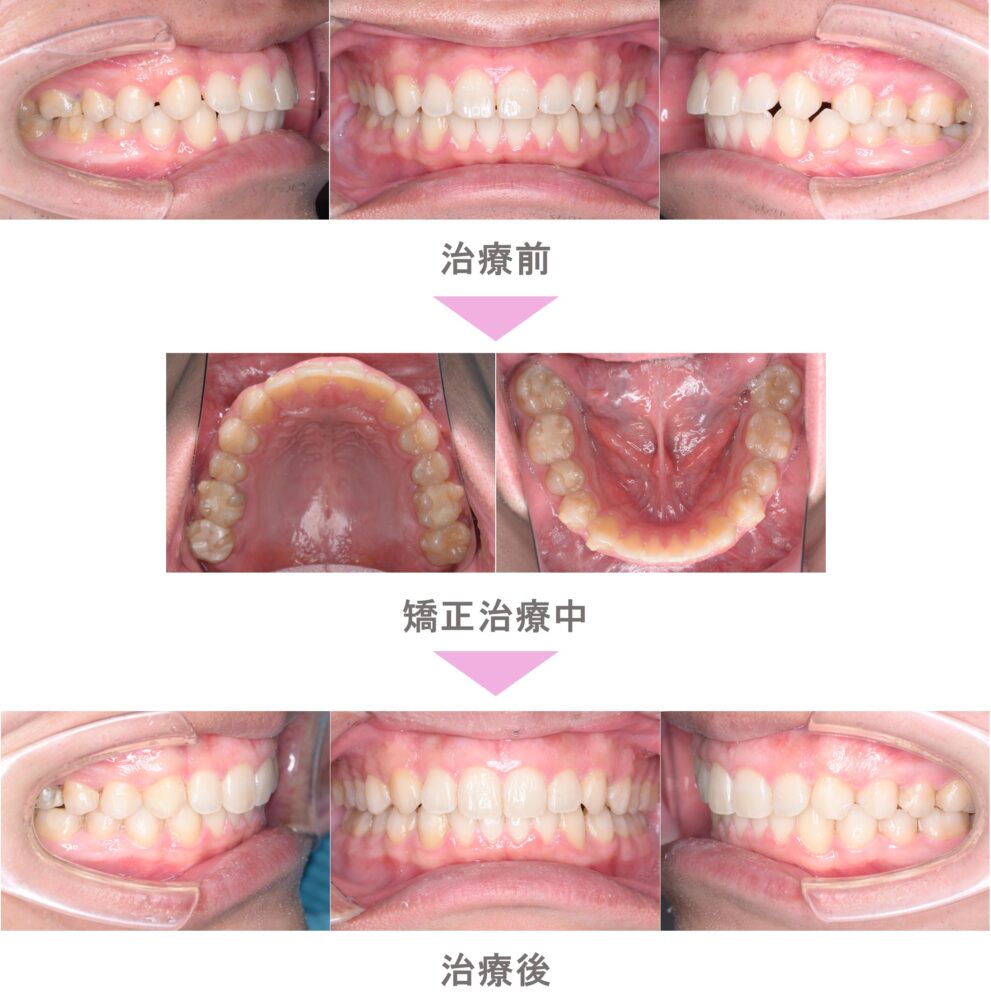 インビザライン矯正(マウスピース矯正)の症例紹介|交叉咬合(すれ違い)と叢生(前歯のでこぼこ)の症状|非抜歯による矯正治療|治療期間は1年4か月(東京都世田谷区・20代女性 )