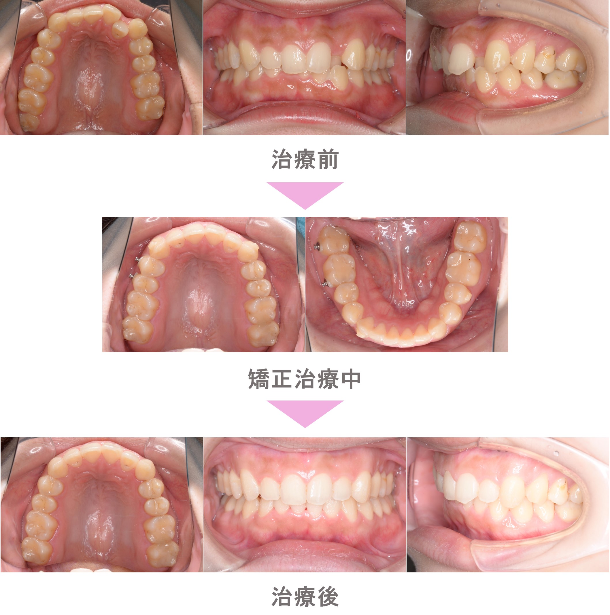 インビザライン矯正(マウスピース矯正)の症例紹介|過蓋咬合(深噛み)と叢生(前歯のでこぼこ)と交叉咬合(すれ違い)の症状|非抜歯による矯正治療|治療期間は1年7か月(東京都大田区・20代女性 )
