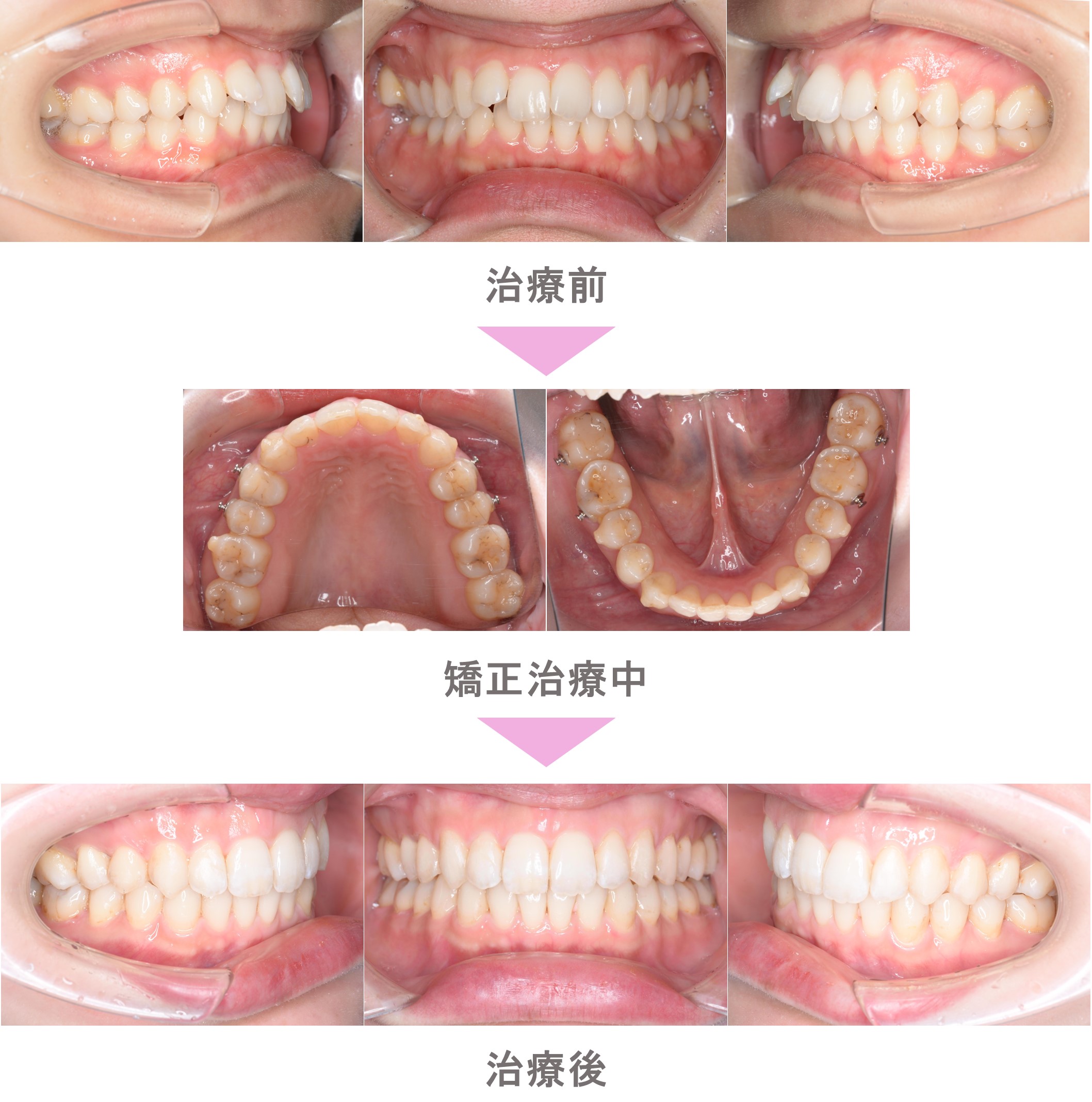インビザライン矯正(マウスピース矯正)の症例紹介|叢生(前歯のでこぼこ)と出っ歯(上顎前突)の症状|非抜歯による矯正治療|治療期間は1年6か月(東京都新宿区・20代女性 )
