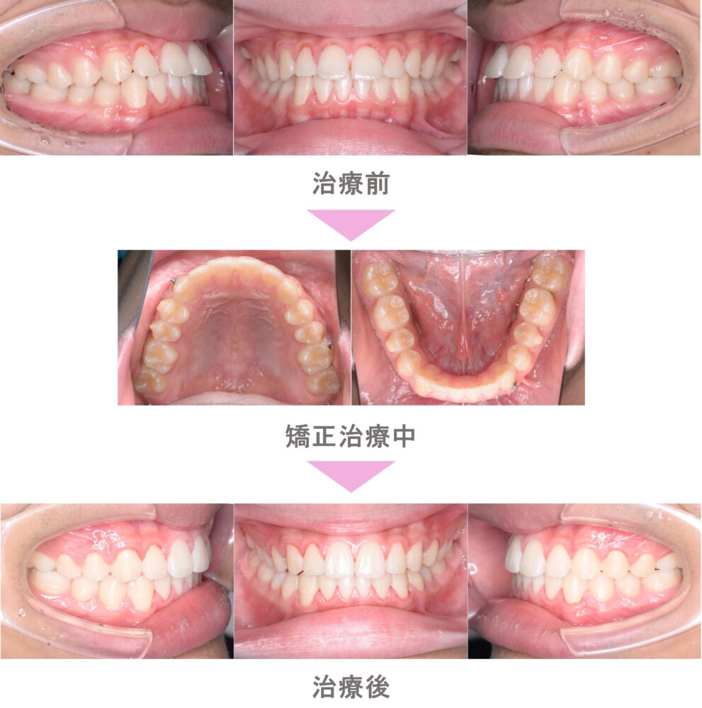 インビザライン矯正(マウスピース矯正)の症例紹介|叢生(前歯のでこぼこ)と交叉咬合(すれ違い)の症状|非抜歯による矯正治療|治療期間は1年4か月(神奈川県横浜市・20代女性 )