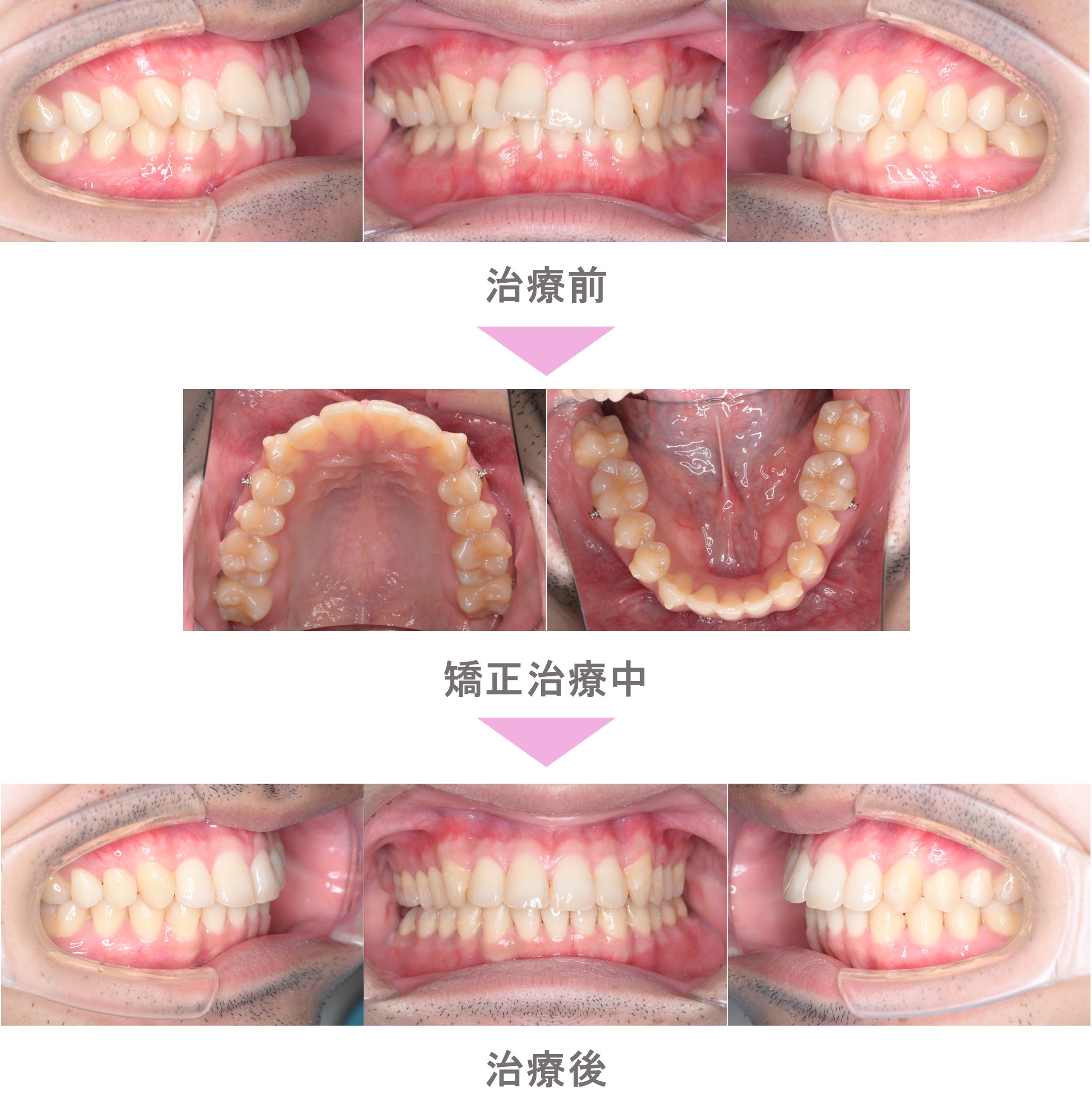 インビザライン矯正(マウスピース矯正)の症例紹介|出っ歯(上顎前突)と叢生(前歯のでこぼこ)と過蓋咬合(深噛み)の症状|非抜歯による矯正治療|治療期間は10か月(神奈川県川崎市・30代男性)