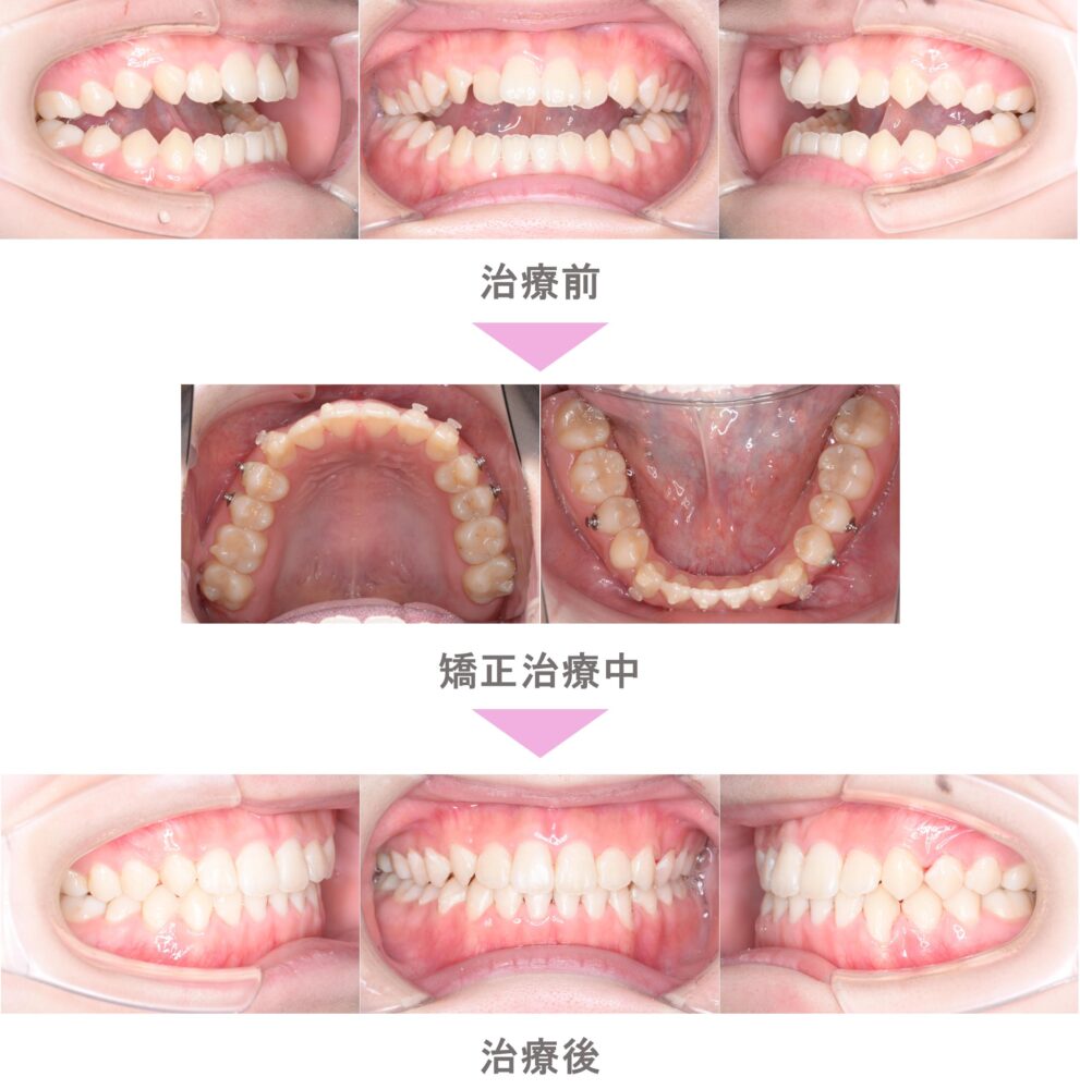 インビザラインファースト(小児矯正)の症例のご紹介です。この患者様は、神奈川県川崎市内からご来院の小学生男子で、上の歯が出ている点と歯の隙間が気になりご来院されました。すきっ歯(空隙歯列)と過蓋咬合(深噛み)の症状があり、痛みや装着の違和感が比較的少ないインビザラインファーストにて非抜歯で治療を行いました。また、前歯の位置が正しく揃うように、左上犬歯の部分にスペースを確保しました。治療期間は8か月です。取り外しもできるので歯磨きも今まで通りでき安心とのことでした。前歯の位置も正しく揃い、綺麗な歯並びになりました。