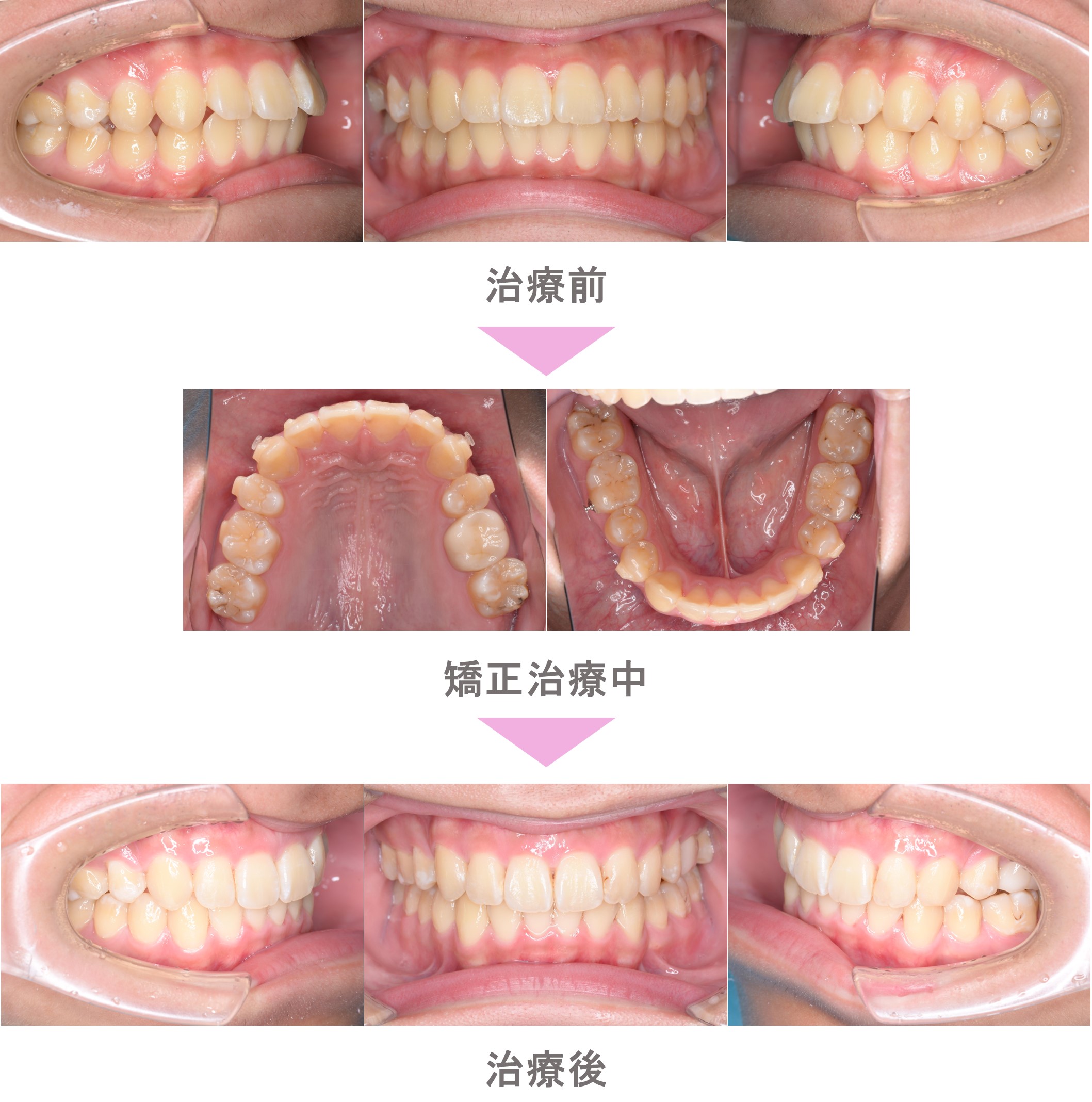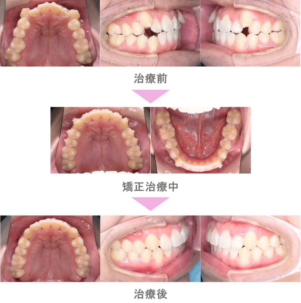 インビザライン矯正(マウスピース矯正)の症例紹介|出っ歯(上顎前突)と上下顎前突(口ゴボ)と叢生(前歯のでこぼこ)の症状|抜歯による矯正治療|治療期間は2年5か月(東京都世田谷区・大学生男性 )