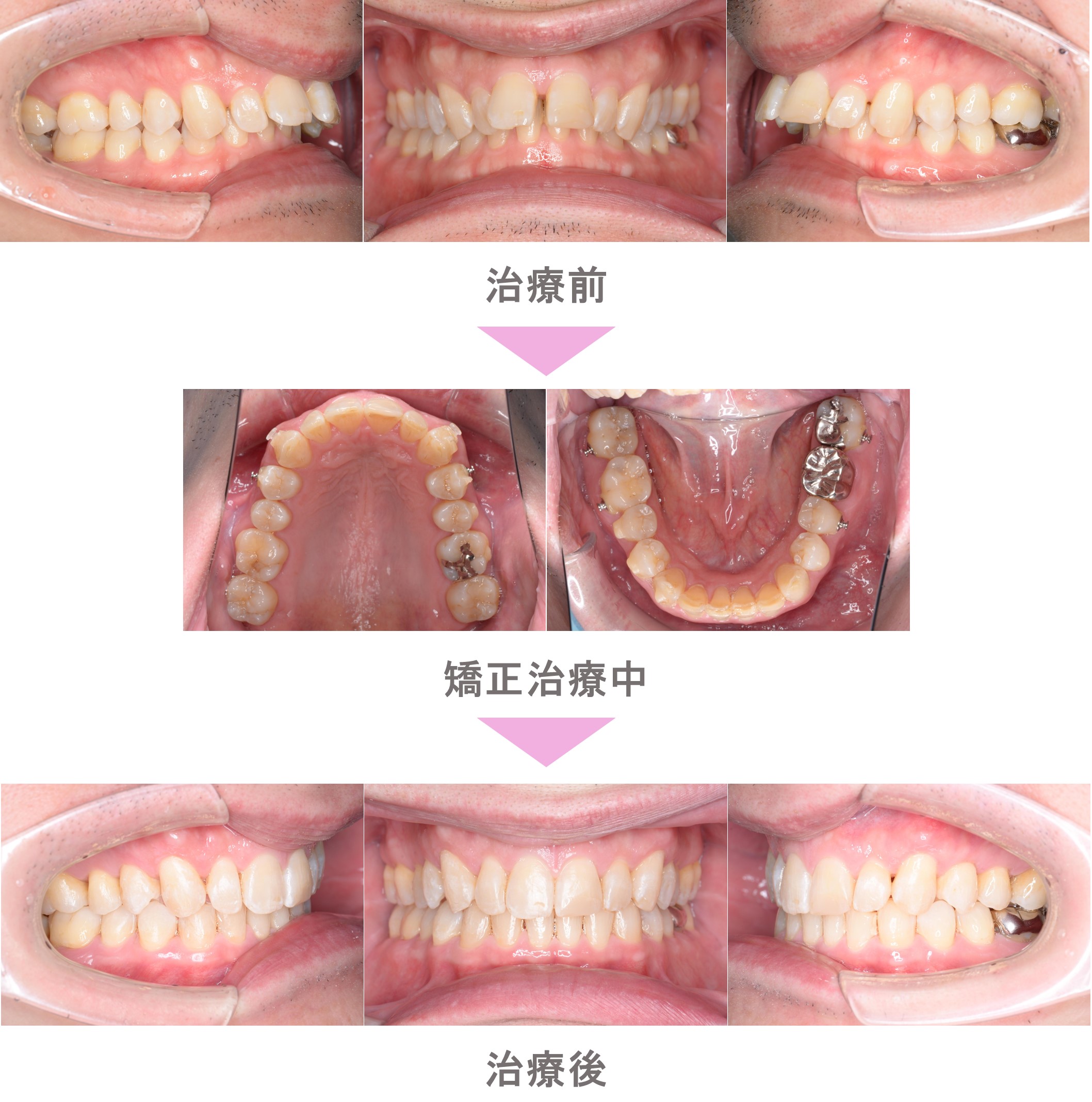 インビザライン矯正(マウスピース矯正)の症例紹介|出っ歯(上顎前突)とすきっ歯(空隙歯列)と過蓋咬合(深噛み)の症状|非抜歯による矯正治療|(東京都練馬区・30代男性)