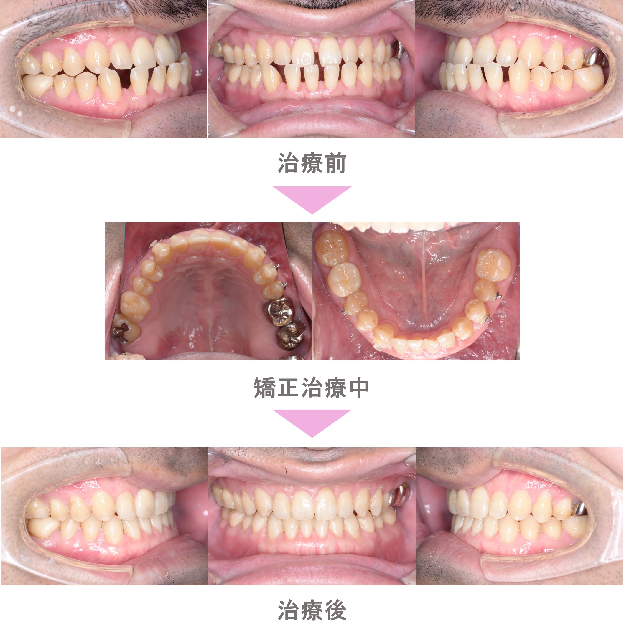 インビザライン矯正(マウスピース矯正)の症例紹介|すきっ歯(空隙歯列)と受け口(反対咬合)の症状|非抜歯による矯正治療|治療期間は1年2か月(神奈川県川崎市・40代男性)