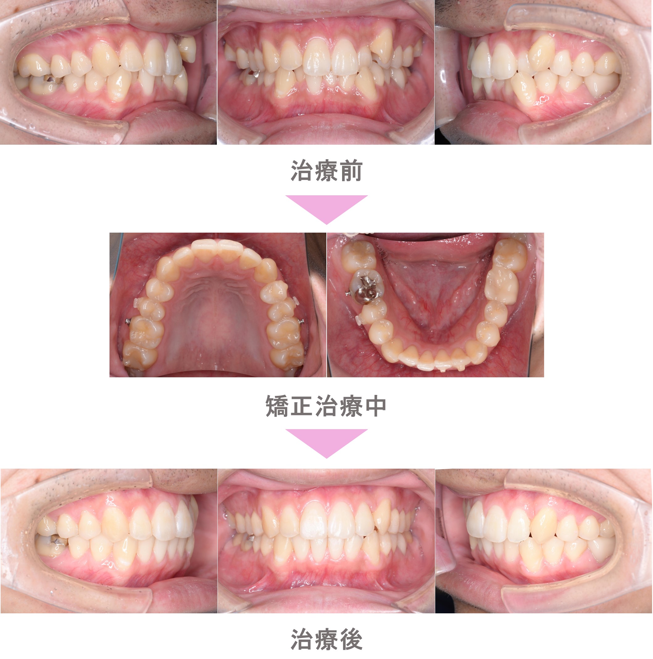 インビザライン矯正(マウスピース矯正)の症例紹介|叢生(前歯のでこぼこ)と八重歯(犬歯突出)と過蓋咬合(深噛み)の症状|非抜歯による矯正治療|治療期間は1年8か月(神奈川県川崎市・20代男性)