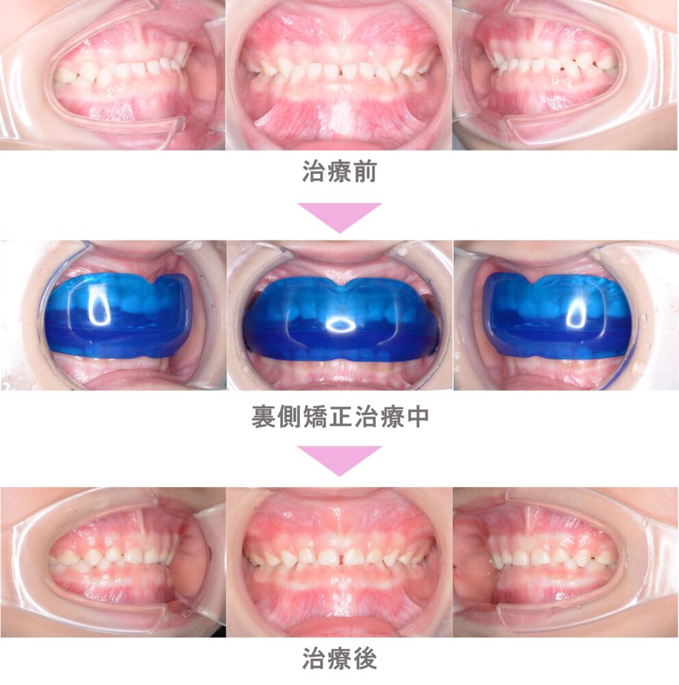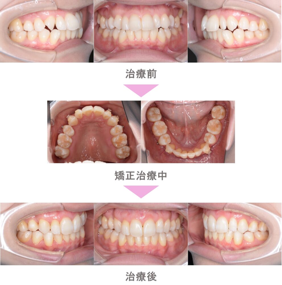 インビザライン矯正(マウスピース矯正)の症例のご紹介です。この患者様は、東京都町田市内からご来院の20代男性で、歯のでこぼこと口元が出ていることが気になってご来院されました。上下顎前突(口ゴボ)と八重歯(犬歯突出)と出っ歯(上顎前突)と叢生(前歯のでこぼこ)の症状があり、痛みや違和感が比較的に少ないインビザラインにて治療を行いました。治療期間は1年9か月です。前歯の角度が大きく変わり、綺麗な歯並びになりました。